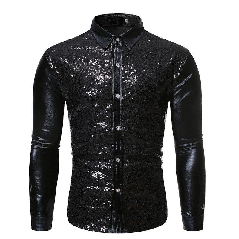 Item:Fashion Men's nightclub sequin gilded dance shirt Slim Tops Lapel