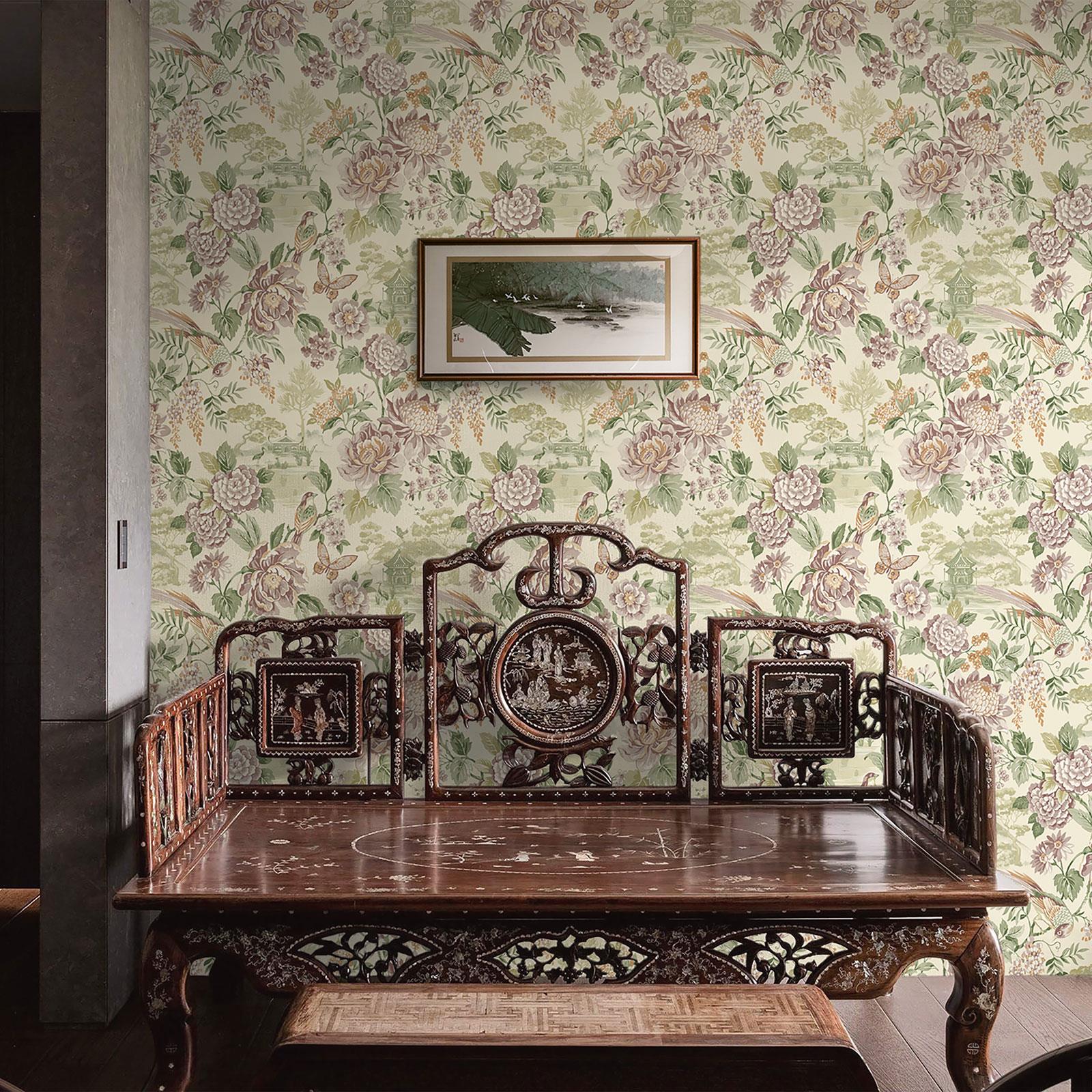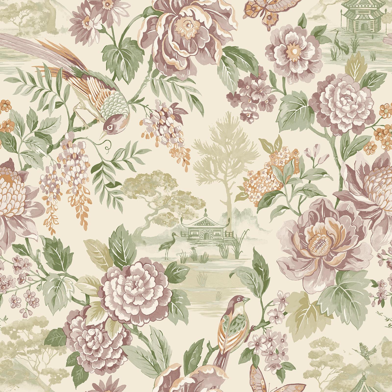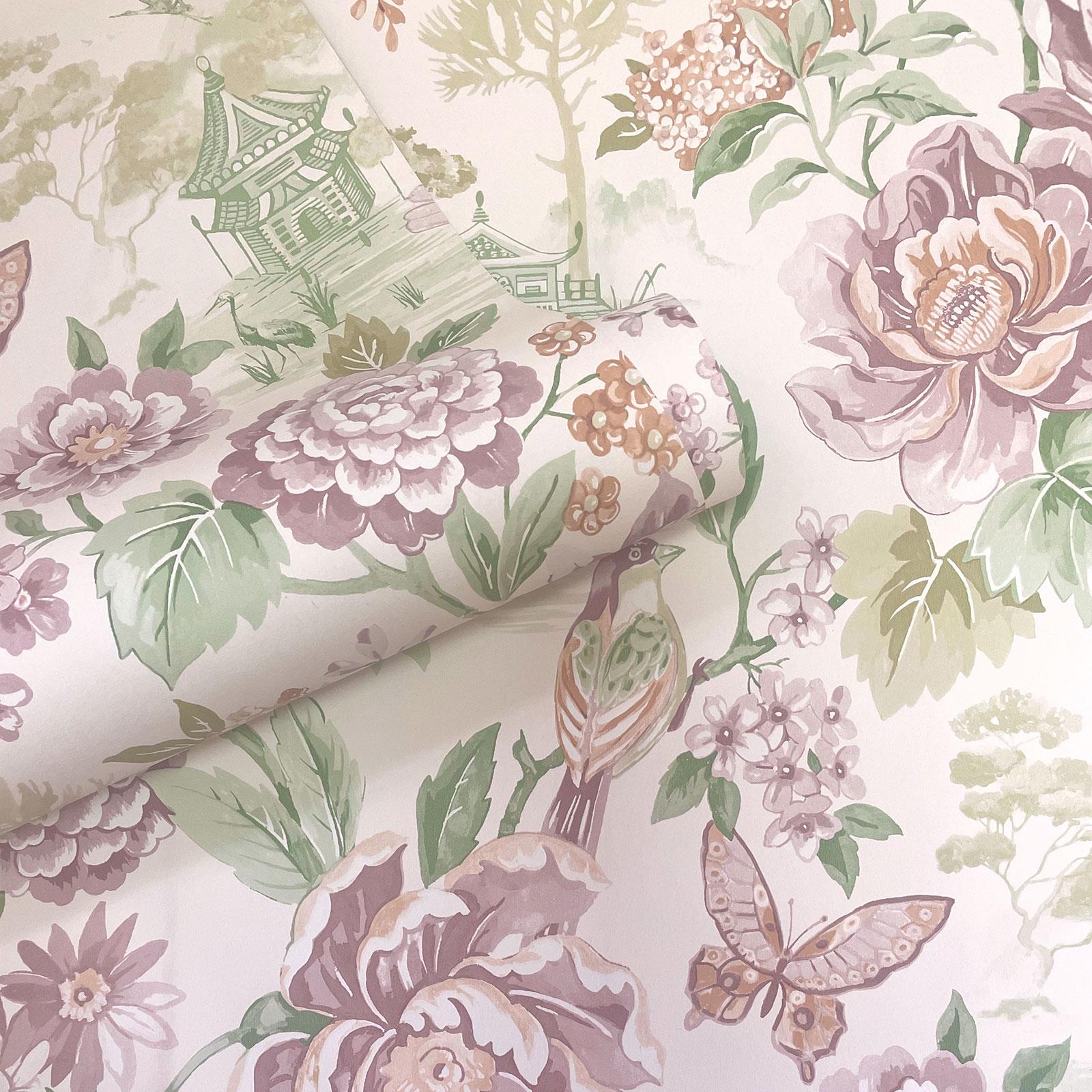 This Scenic Bird Wallpaper will create a breathtaking feature within your home. The design features bundles of lush foliage and large blossoming flowers with beautifully perched birds, drawing you in to illustrations of intricately detailed Japanese pagodas, in tones of green, pink, orange and cream. This pattern will create a captivating focal point in your home, whether that be in cosy sitting rooms, quiet reading corners or bedrooms. We recommend ordering multiple samples to help you choose the best design for your space!