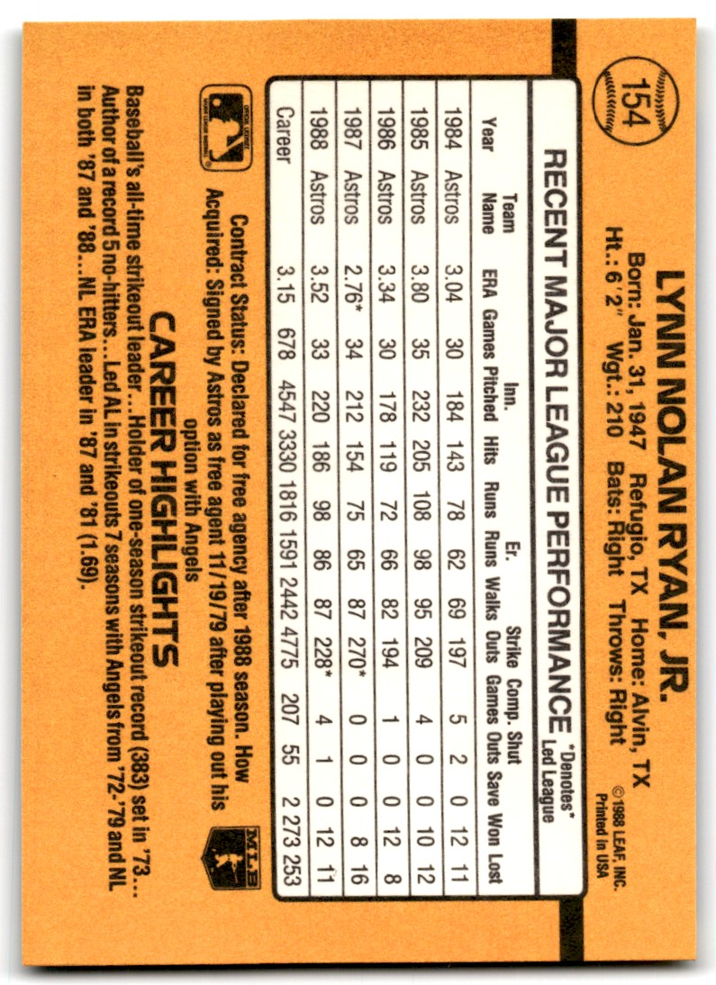 | 1989 Donruss Nolan Ryan P Houston Astros #154 |