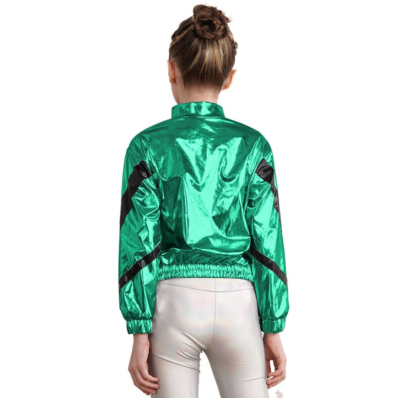 Long sleeve stand collar jacket for girls, elastic cuffs and hem, zipper closure for easy wearing.