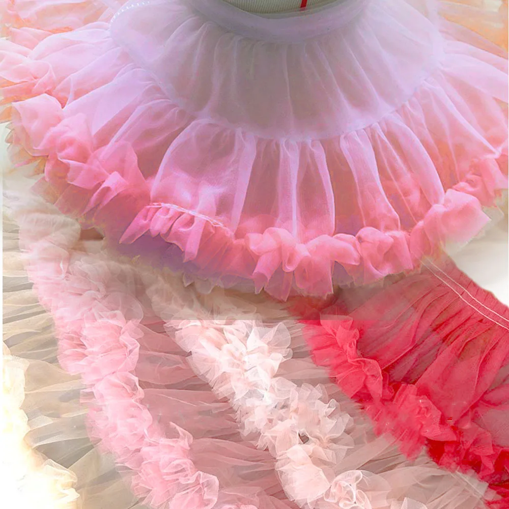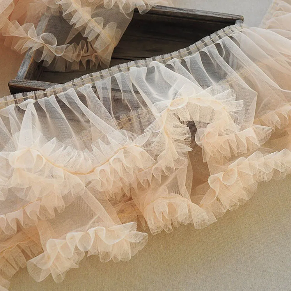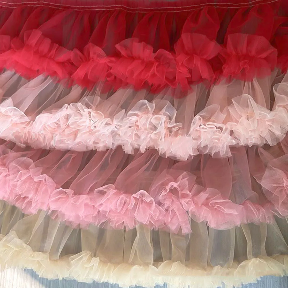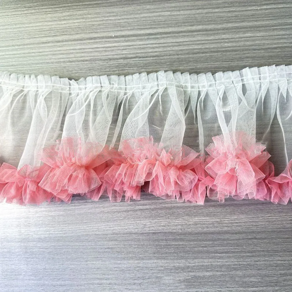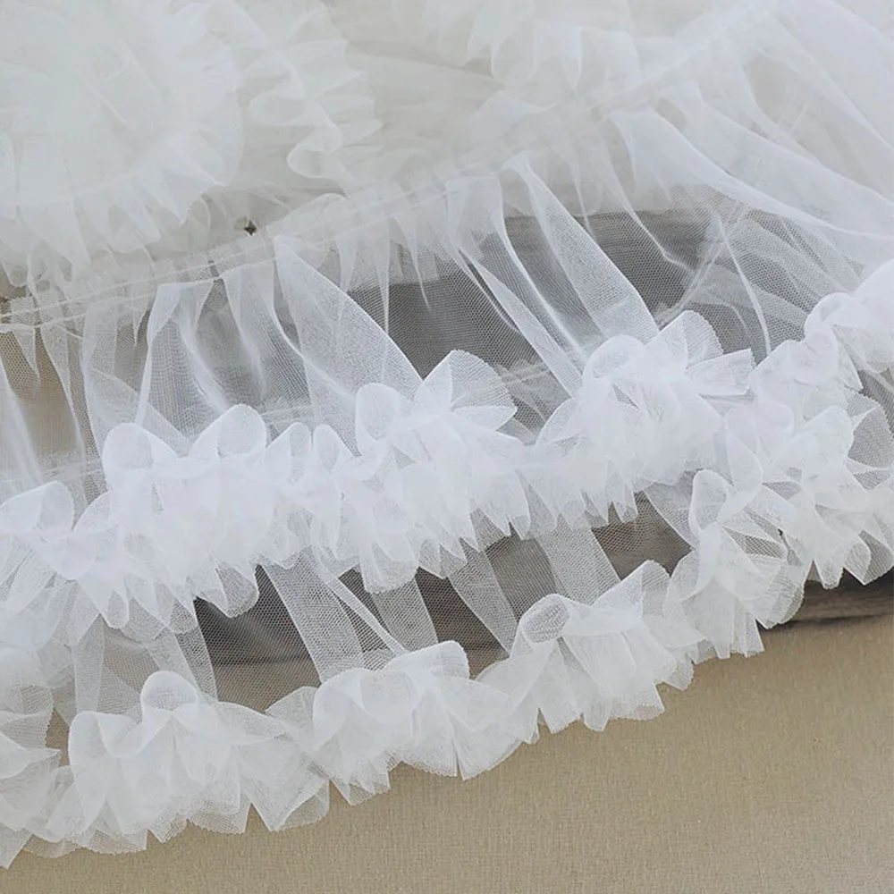 New Pleated 3D Applique Trim Tulle Lace Fabric DIY Wedding Dress Lolita Fluffy Party Girl Skirt Home Textile Sewing Accessories