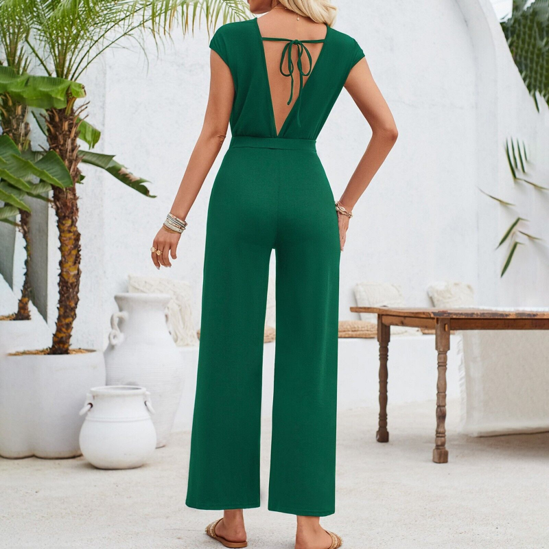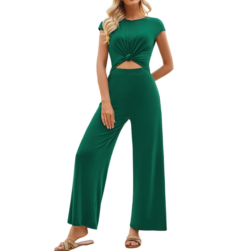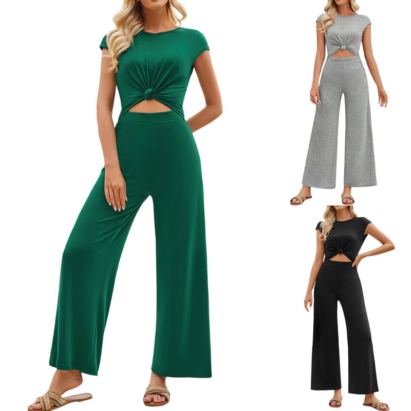 * Item:Women Casual Fashion Short Sleeve Round Neck Solid Color Wide Leg Jumpsuit Pants