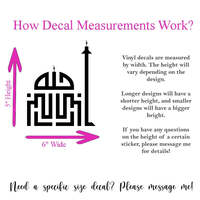 Decal sizes range by width. If you would like a bigger or smaller decal please message me for a custom order!