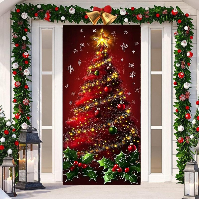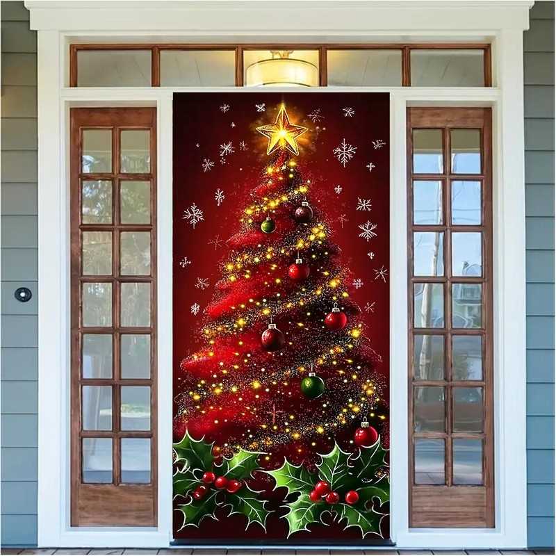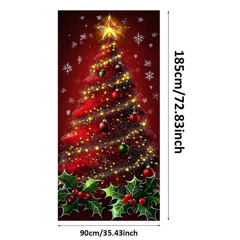 Xmas Tree Pattern Christmas Door Cover Backdrop Banner Party Door Hang Props