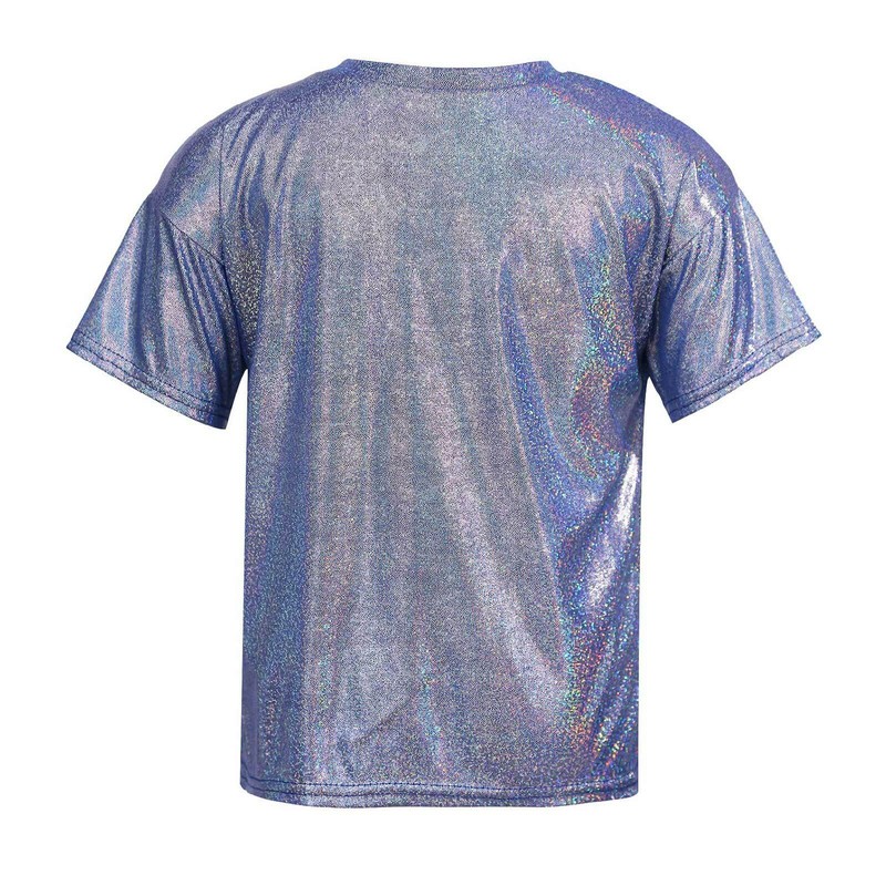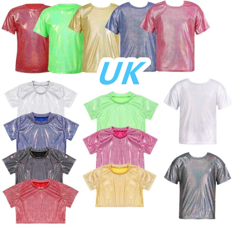 UK Kids Girls Boys Sparkle Shiny Short Sleeves T-Shirt Glitter Jazz Hip Hop Tops