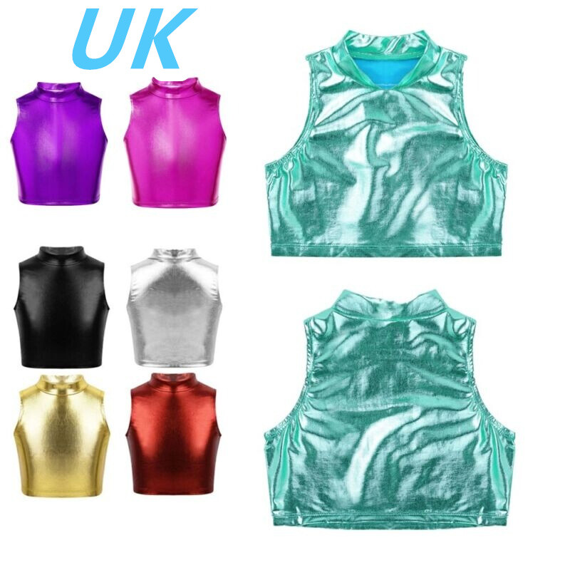 Kids Girls and Boys Metallic Shiny T-shirt Sparkly Jazz Dance Tops.