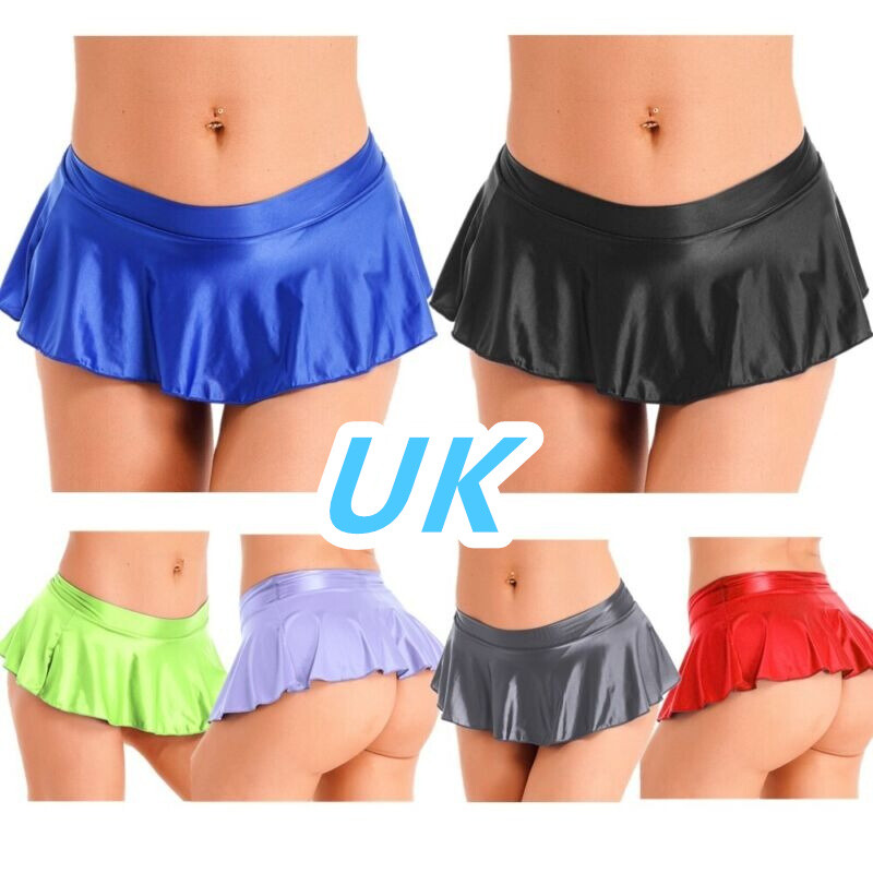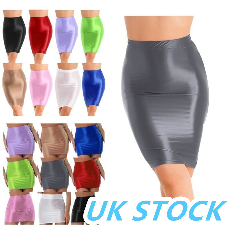 UK Women Shiny Glossy Pencil Skirt Stretch Solid Color Miniskirts Smooth Skirts