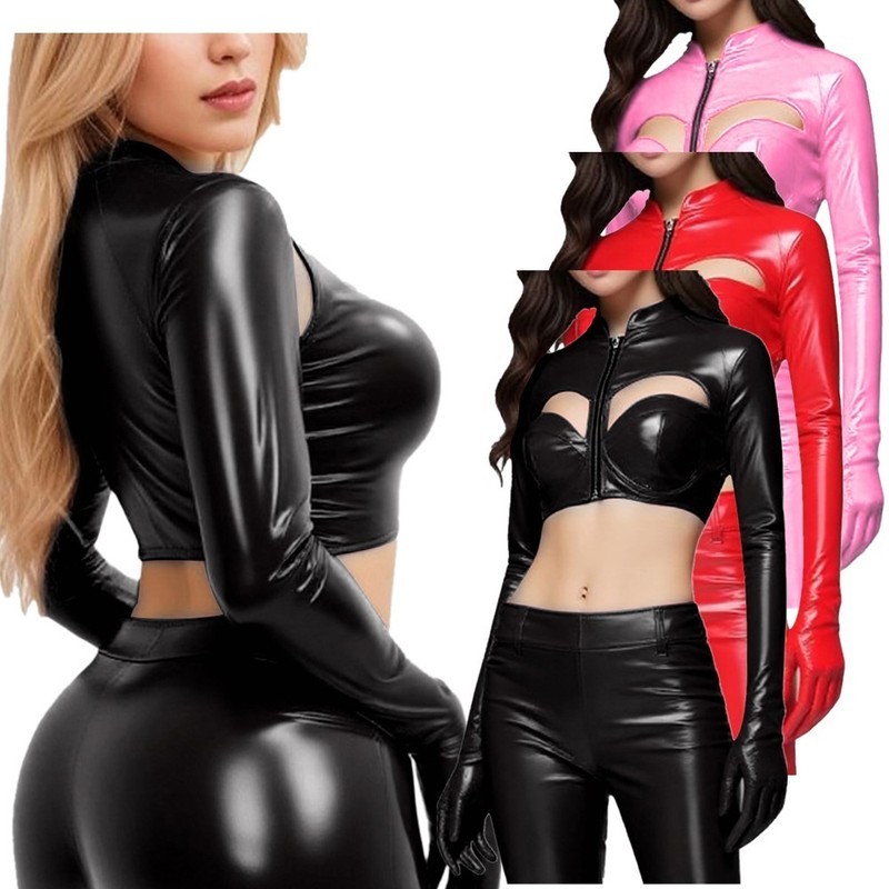 Women’s full cover jumpsuit is designed with long sleeve, glossy and high elastic fabric for highlighting charming curvy figure.