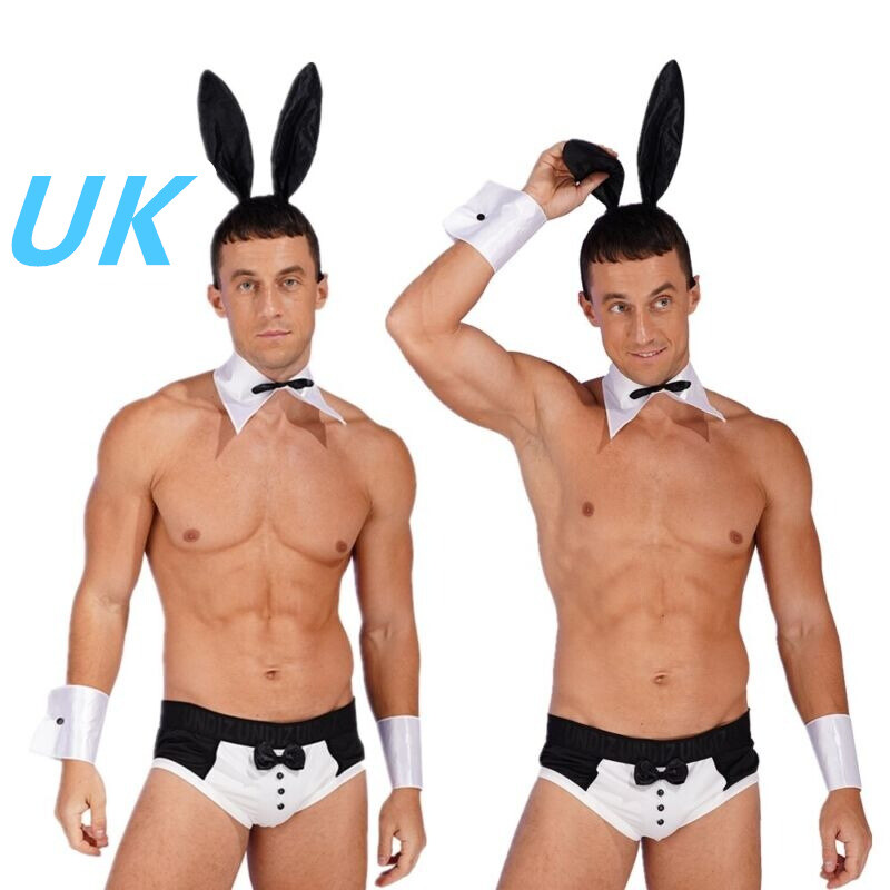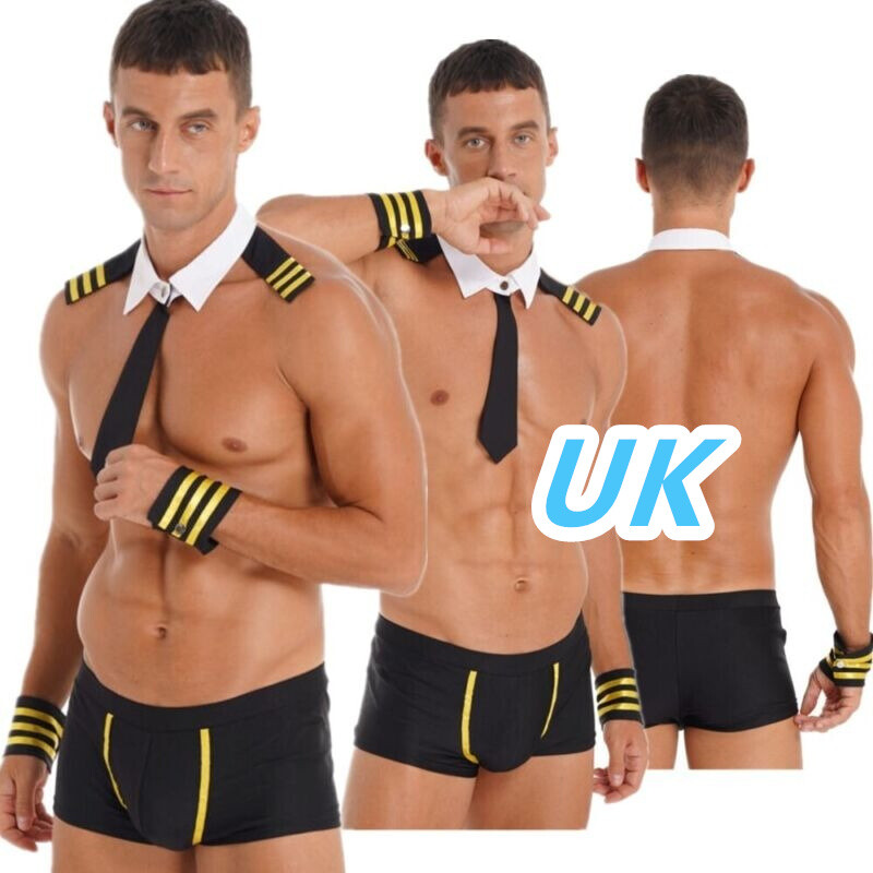UK Sexy Mens 4 Pieces Waiter Gentleman Cosplay Costume Uniform Lingerie Sets