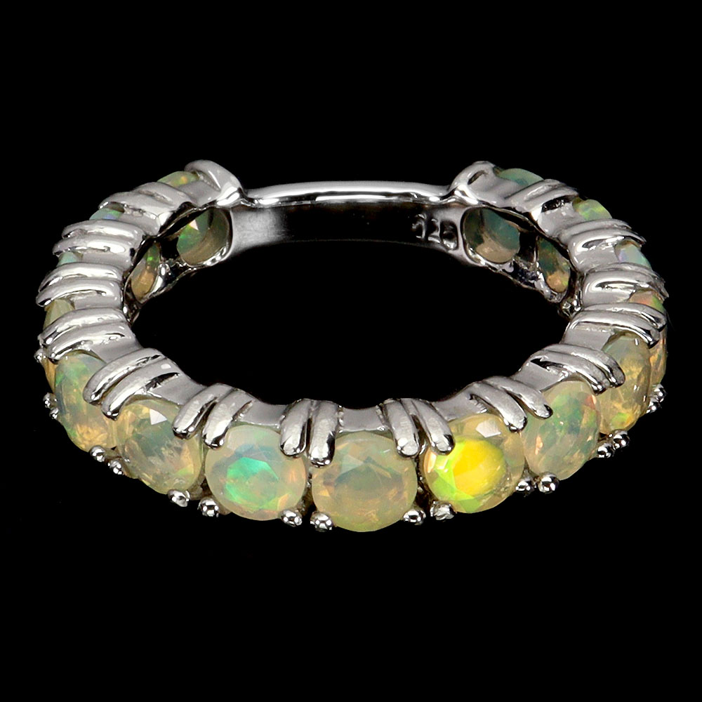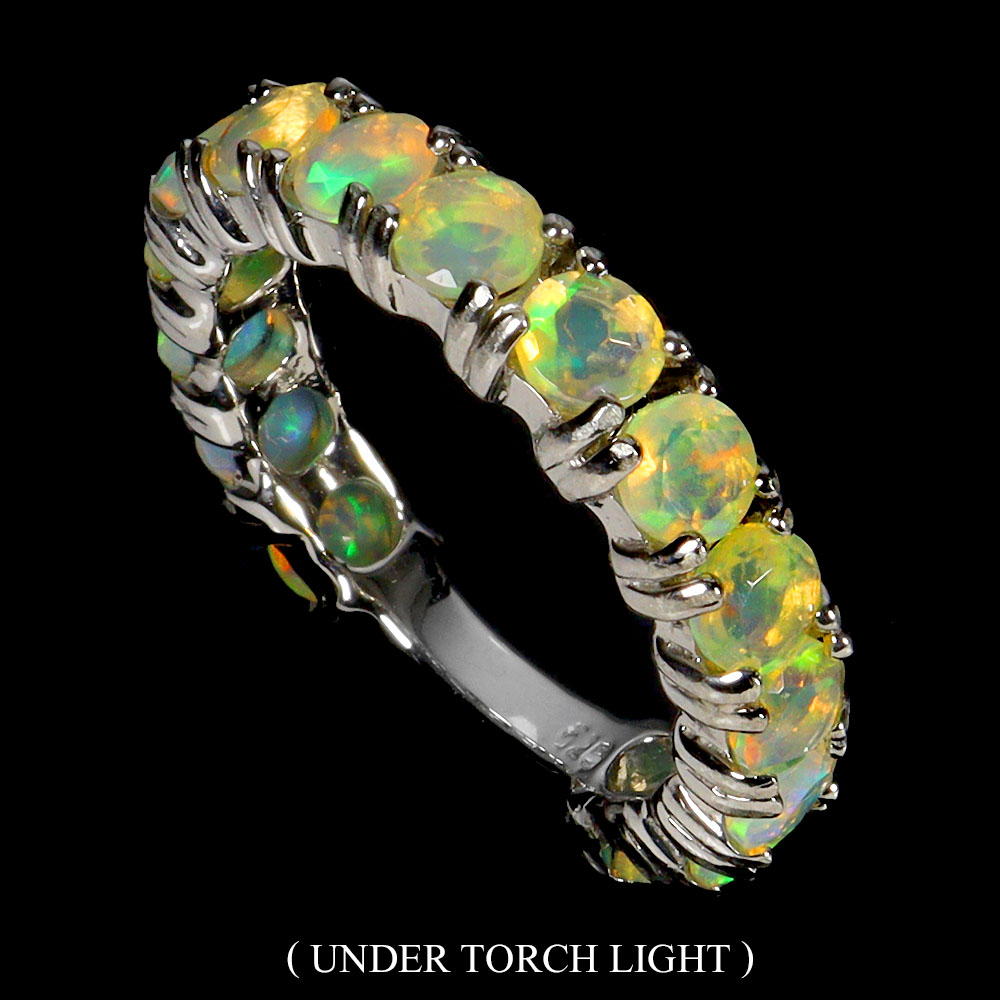 925 Sterling Silver Ring Round Fire Opal 4mm Natural Gemstone Jewelry Size 8.5