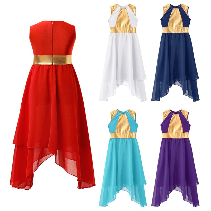 Invisible zipper closure at the back, easy to put on or take off, two layer long irregular hem chiffon in outside.