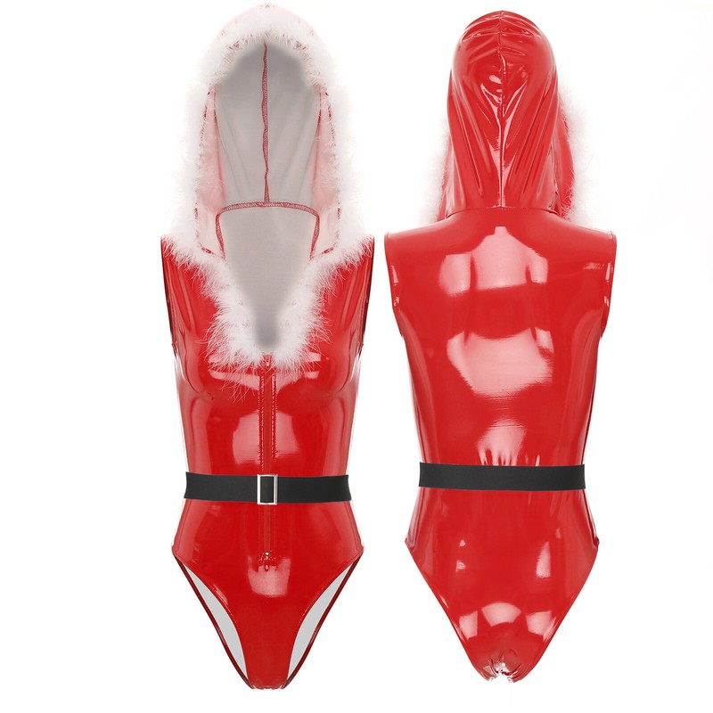 Glossy patent leather brings wet look and a touch of temptation. Santa Claus bodycon bodysuit adds more fun and excitement for Christmas party.