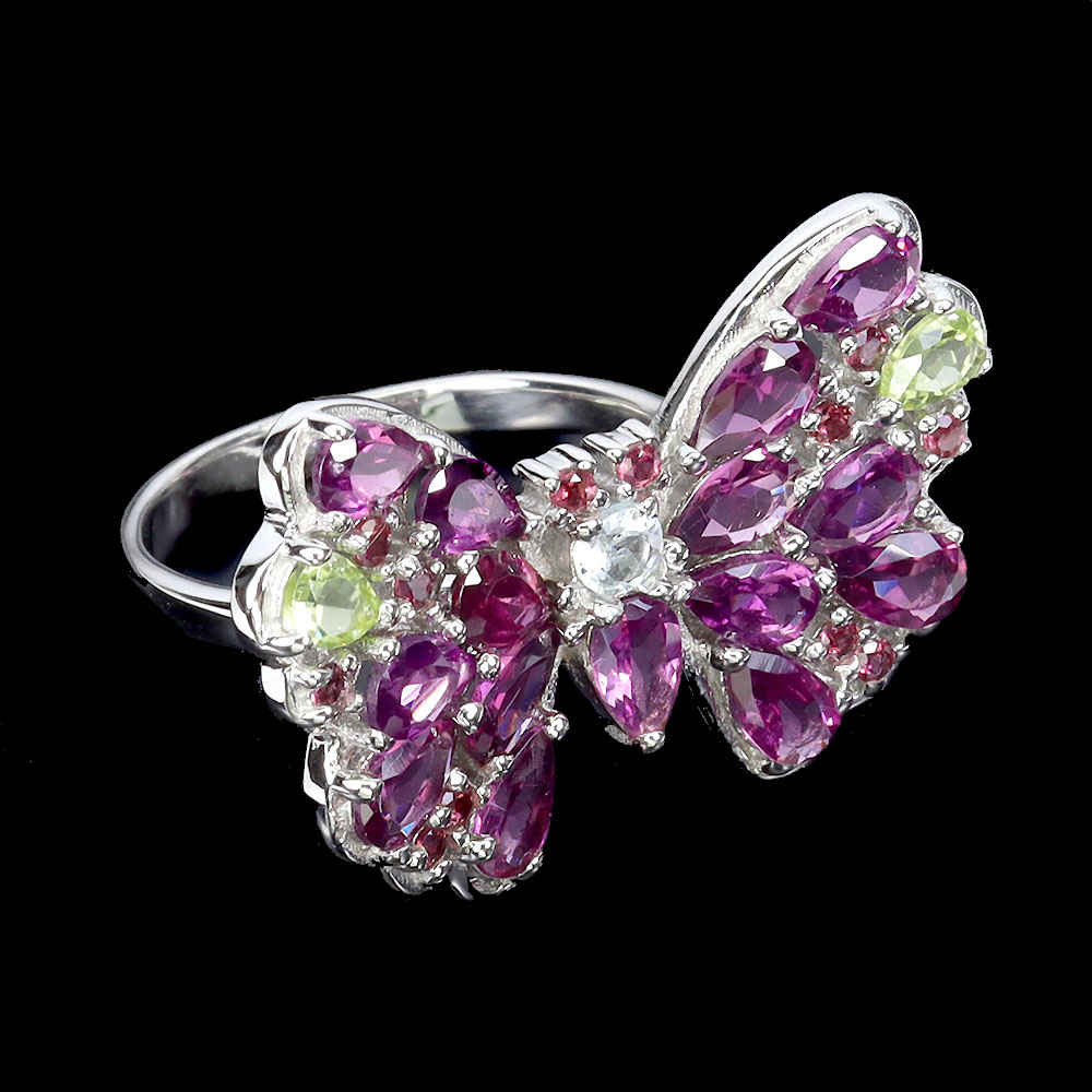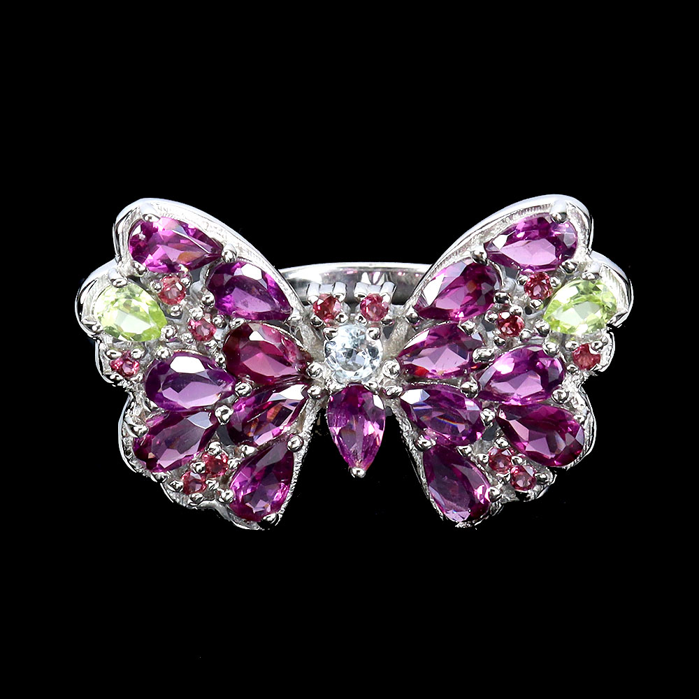 925 Sterling Silver Ring Pear Rhodolite Garnet Aquamarine Gemstone Jewelry