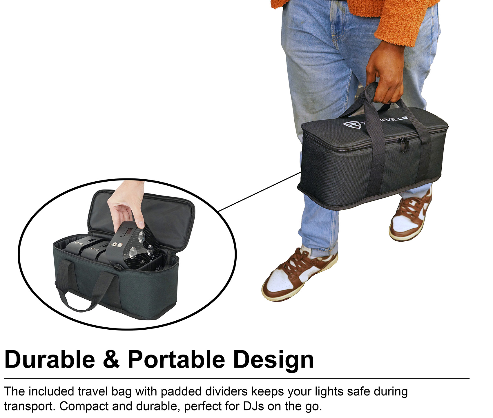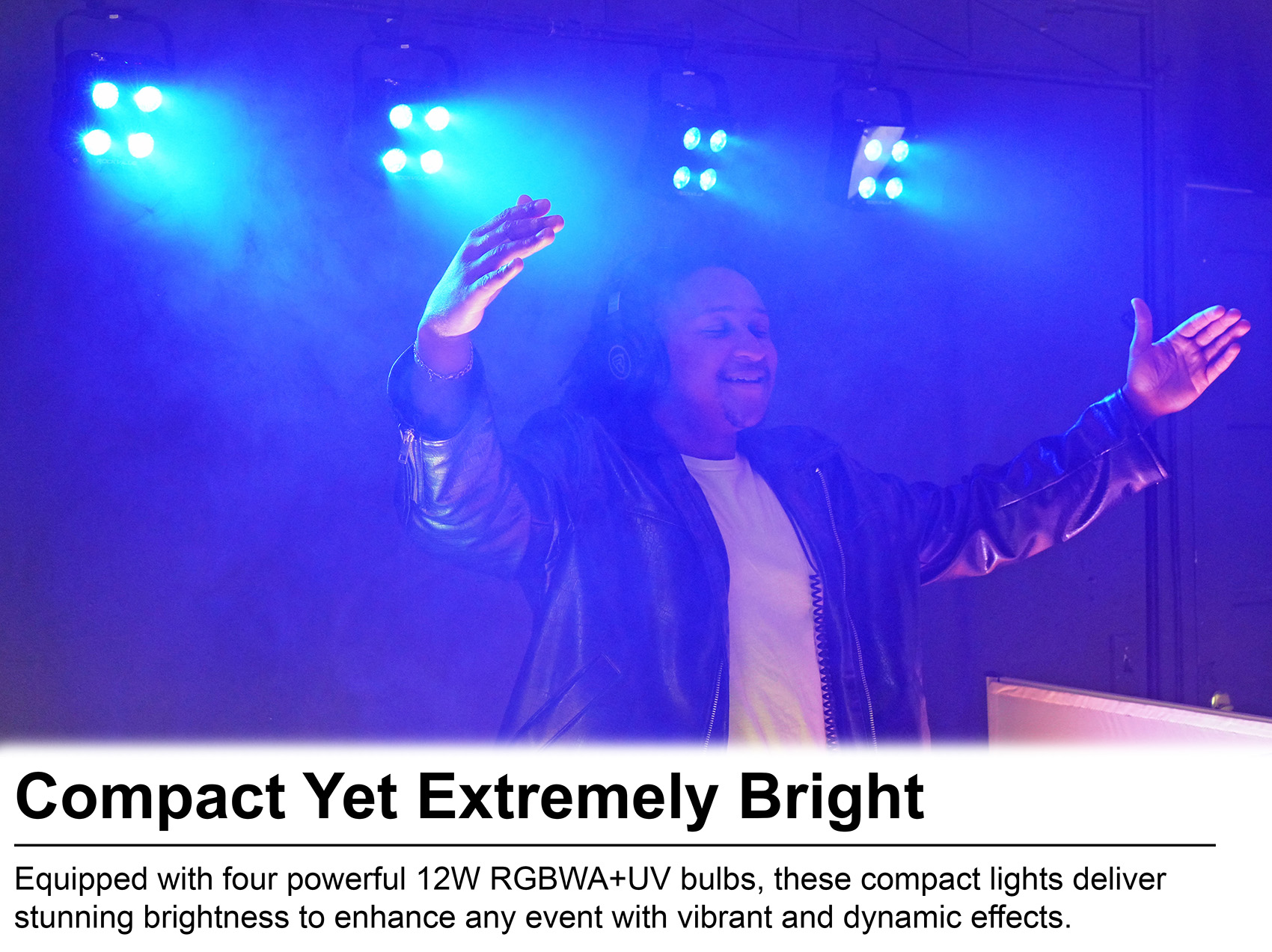 The MINI RF4 V2 is 4 times the brightness as our MINI RF1. This light is really portable. They are light-weight and compact and easy to set up and take from gig to gig.