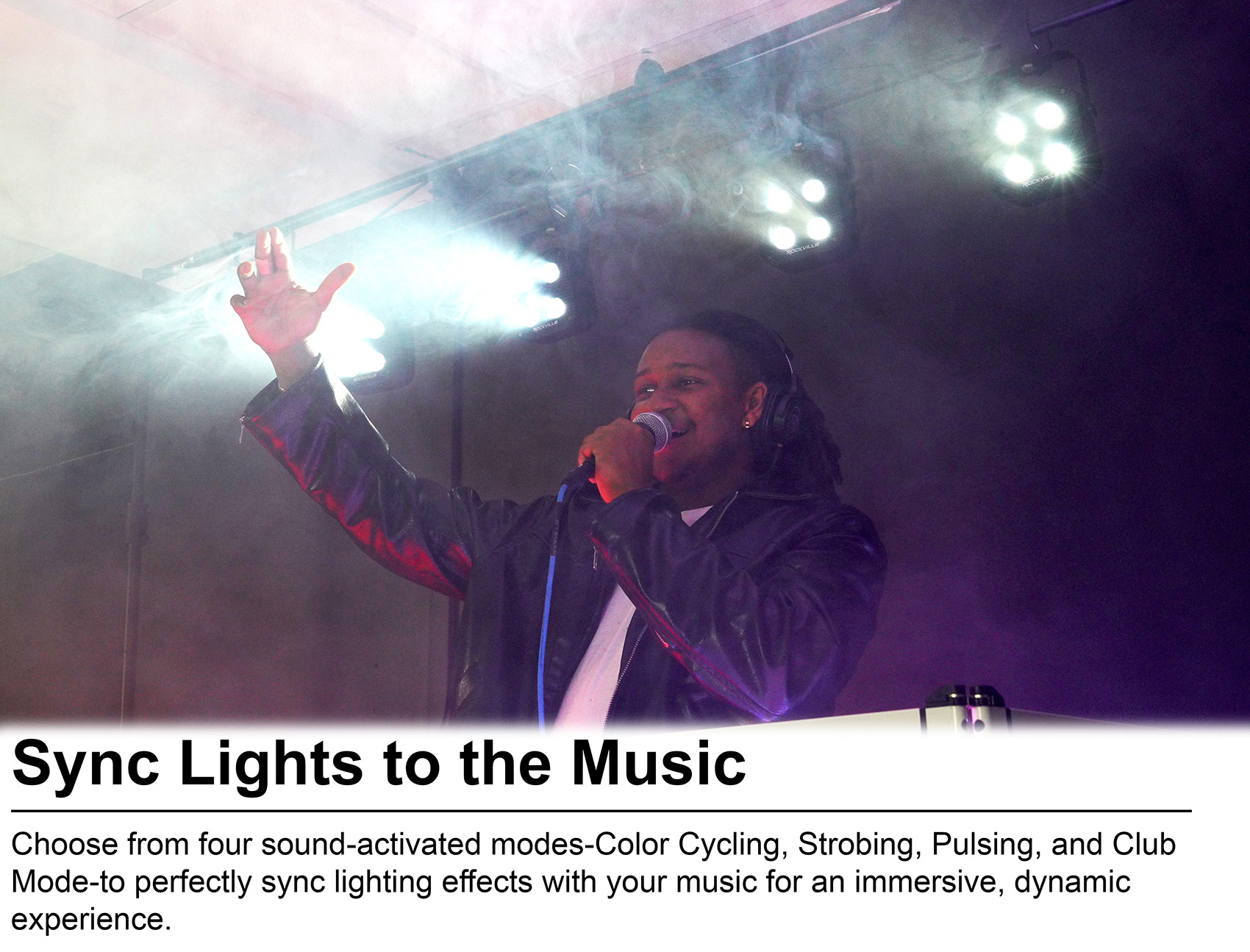 We added 4 sound modes that you can apply with one button from the remote. You can also apply any sound mode to any group! The sound modes are color cycling, color strobing, color pulsing, and a club sound mode that is programmed to do more intense strobing combined with color changing to get people dancing! We also added mic sensitivity controls for the sound modes as well as brightness controls.