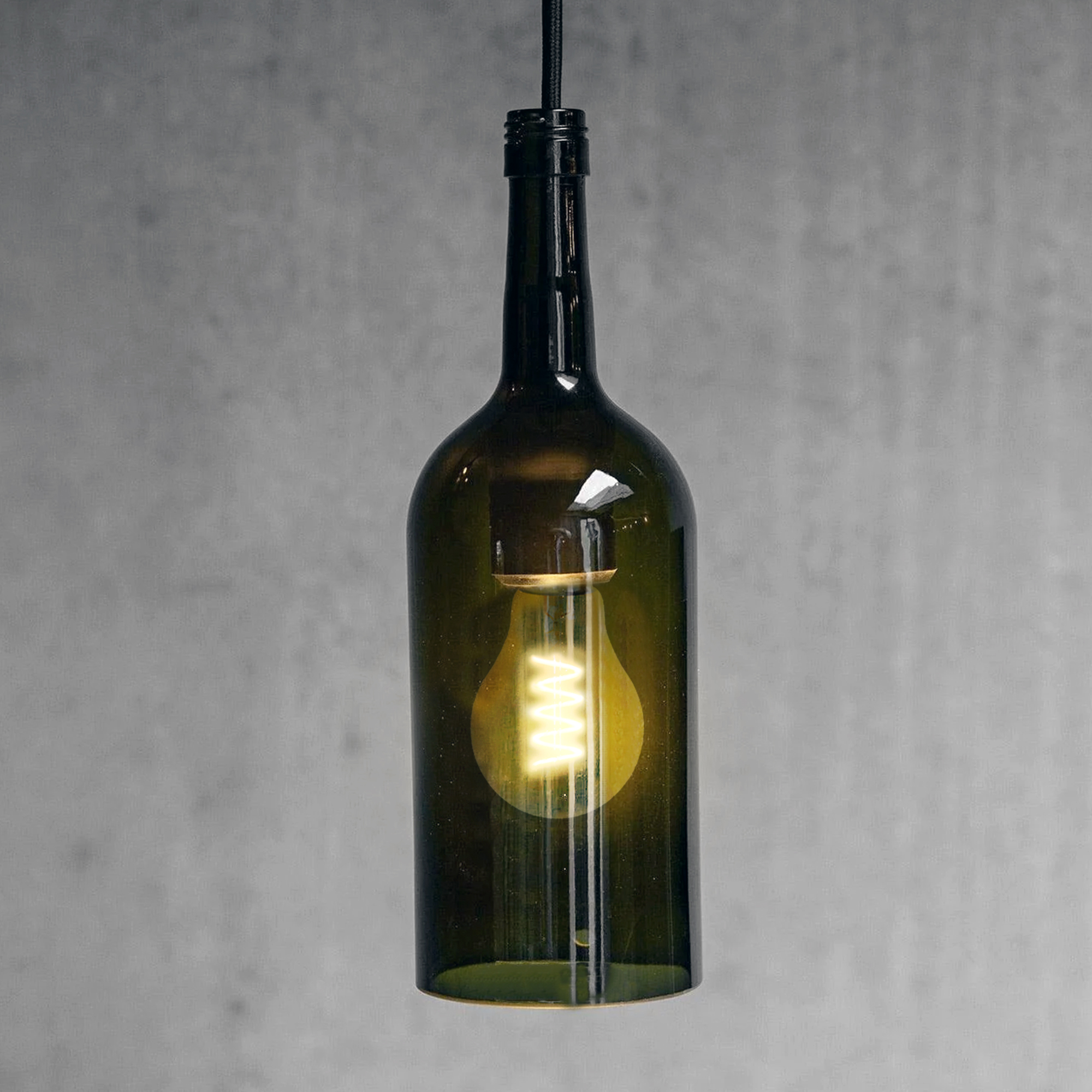 Hängelampe aus recycelter 1,5l Weinflasche Olive mit Vintage LED Filament Glühbirne