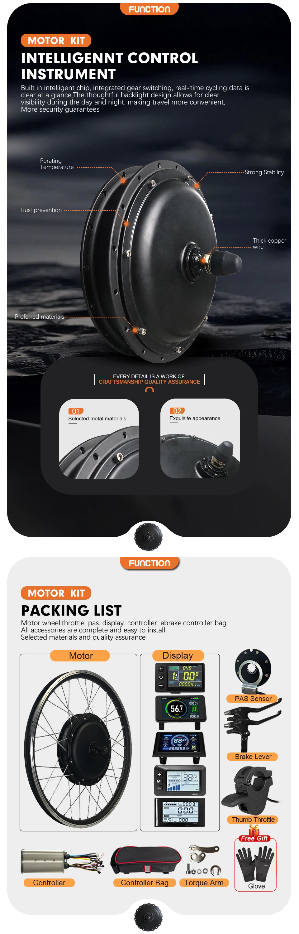 [Complete Accessories] Equipped with all necessary accessories. Front wheel and motor, controller, display (optional), brake lever, thumb throttle, PAS, extension cable, controller package.
