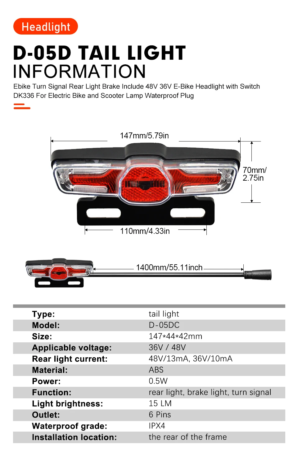 ●Function: rear light, brake light, turn signal