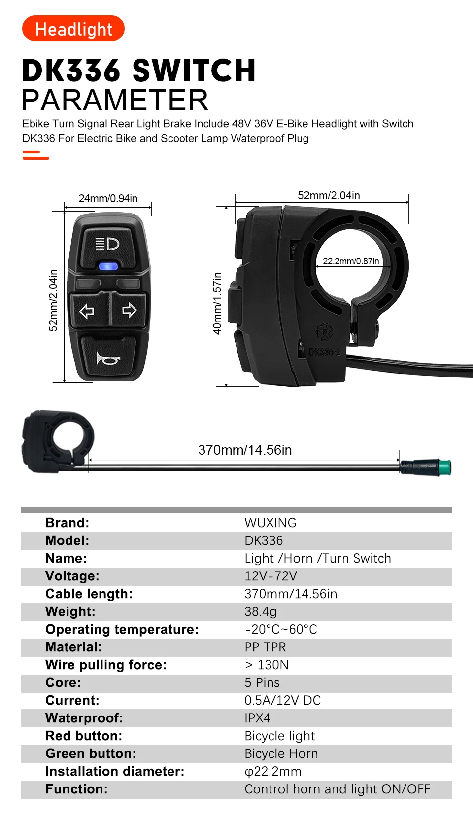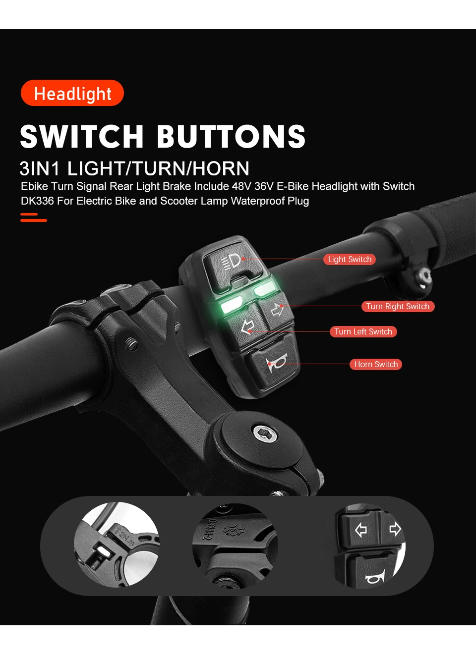●3 in 1 Switch:Light+Turn+Horn