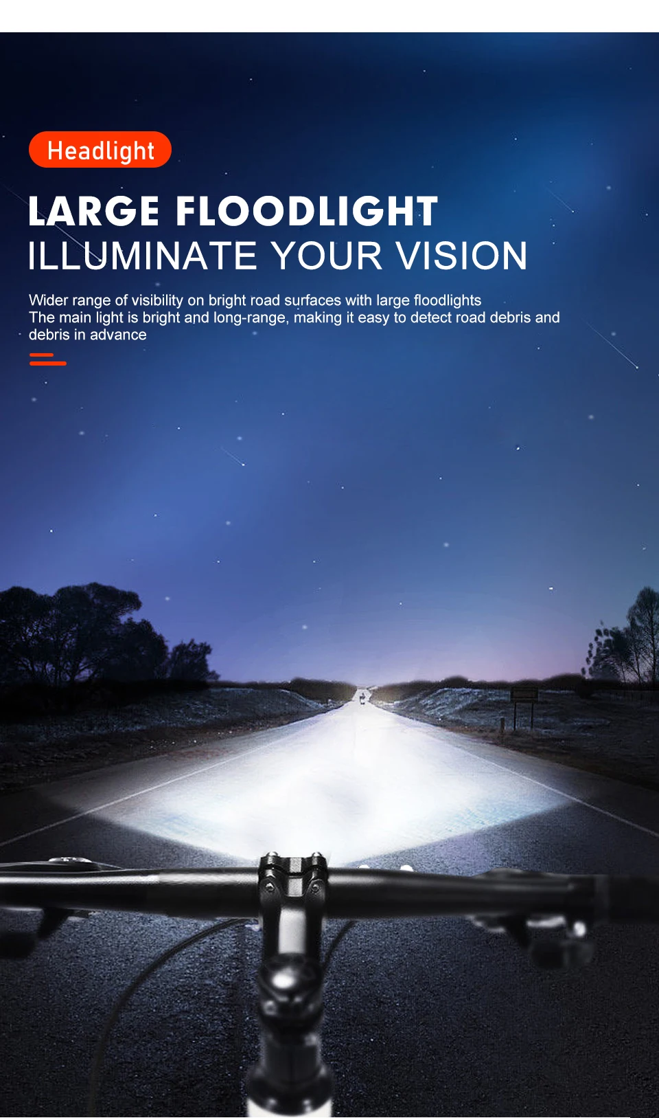 ●Electric Bicycle Headlight keeps your security at night while riding.