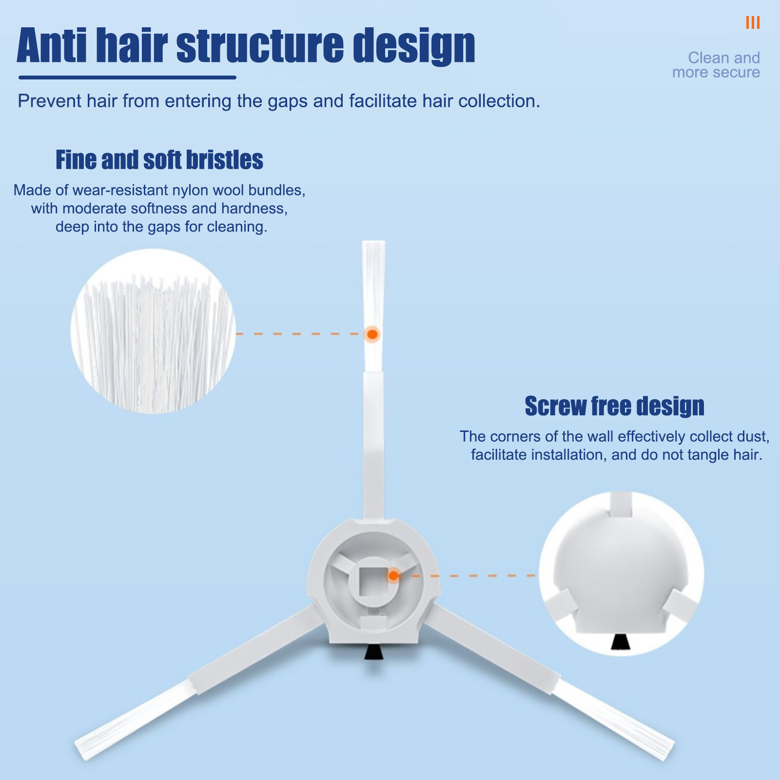 -Quality above all else, no more worrying about your sweeper getting stuck in hair with our powerful and quiet roller brushes and provided cleaning tools. Our side brush bristles are made of high quality rubber and are designed to outlast the competition. If you receive a bent or curled side brush due to rough transportation, to recover it just need to soak in warm water for 15 seconds