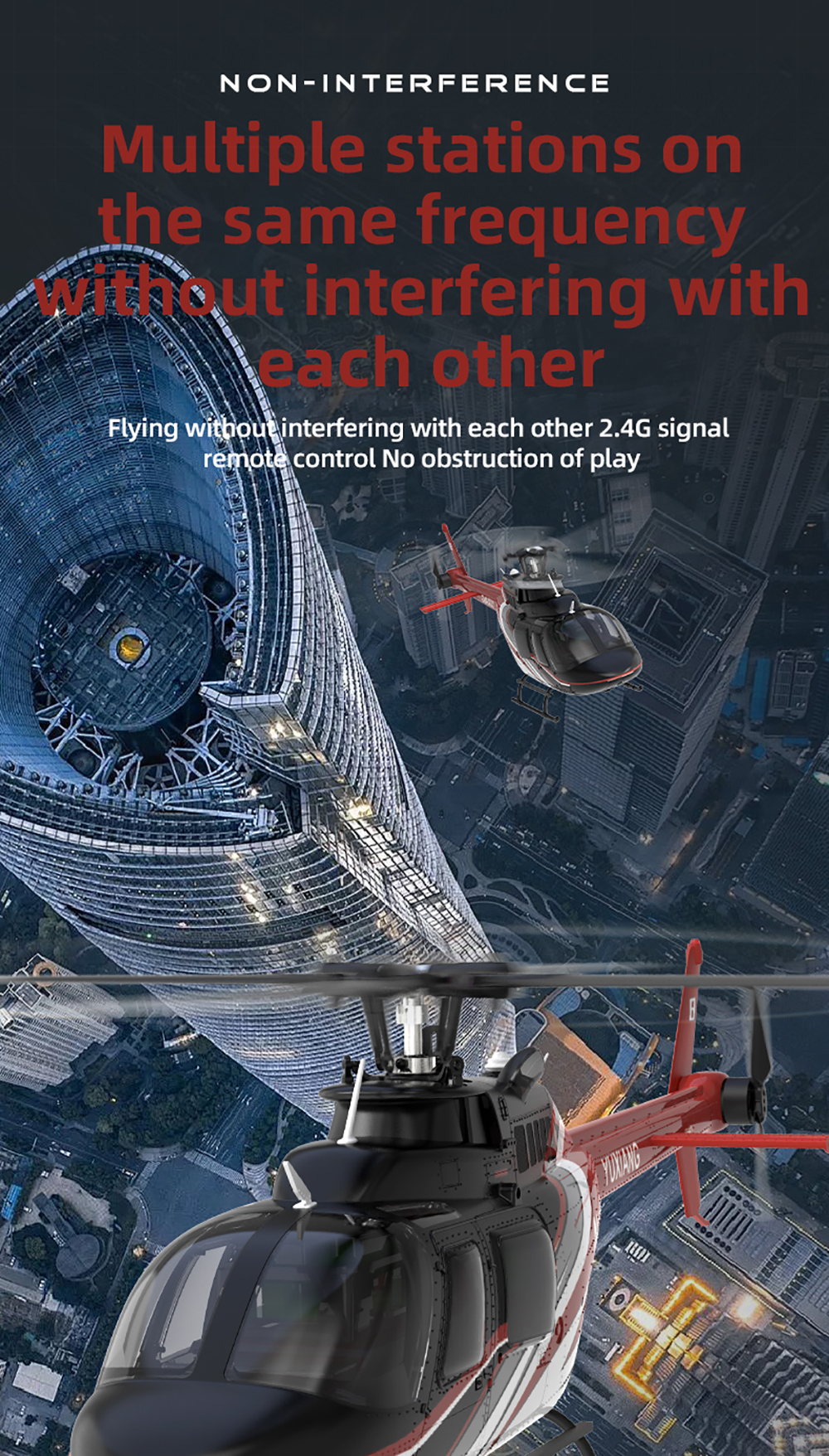 7. Multiple stations onthe same frequency,Flying without interfering with each other 2.4G signal remnote control No obstruction of play.