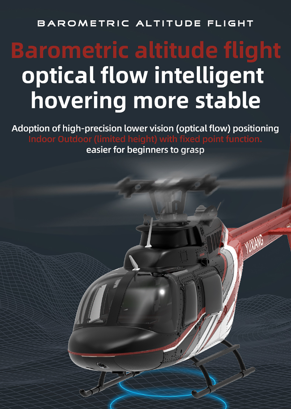 YU XIANG RC Airplane 2.4G 6CH Intelligent Aileronless High Simulation Bell-206 Helicopter 6-Axis Gyro 120M Brushless Motor Adult Children's Toys