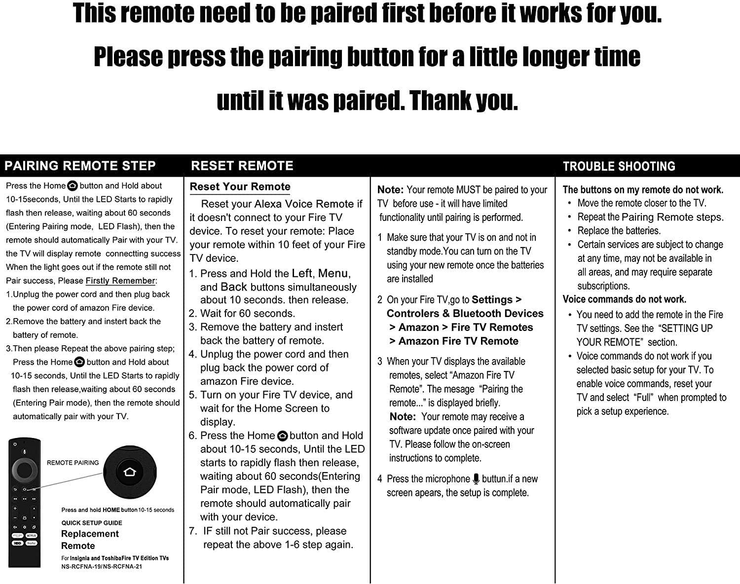OEM Replacement Fire TV Voice-Activated Remote Control NS-RCFNA-21 for Insignia Fire TV Build-in Prime Video/Netflix/HBO/Hulu Hot Keys