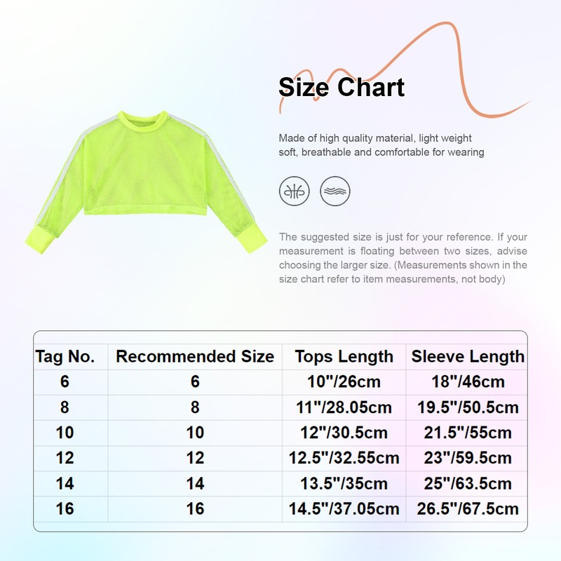 | Tag No. | Recommended Size | Tops Length | Sleeve Length |