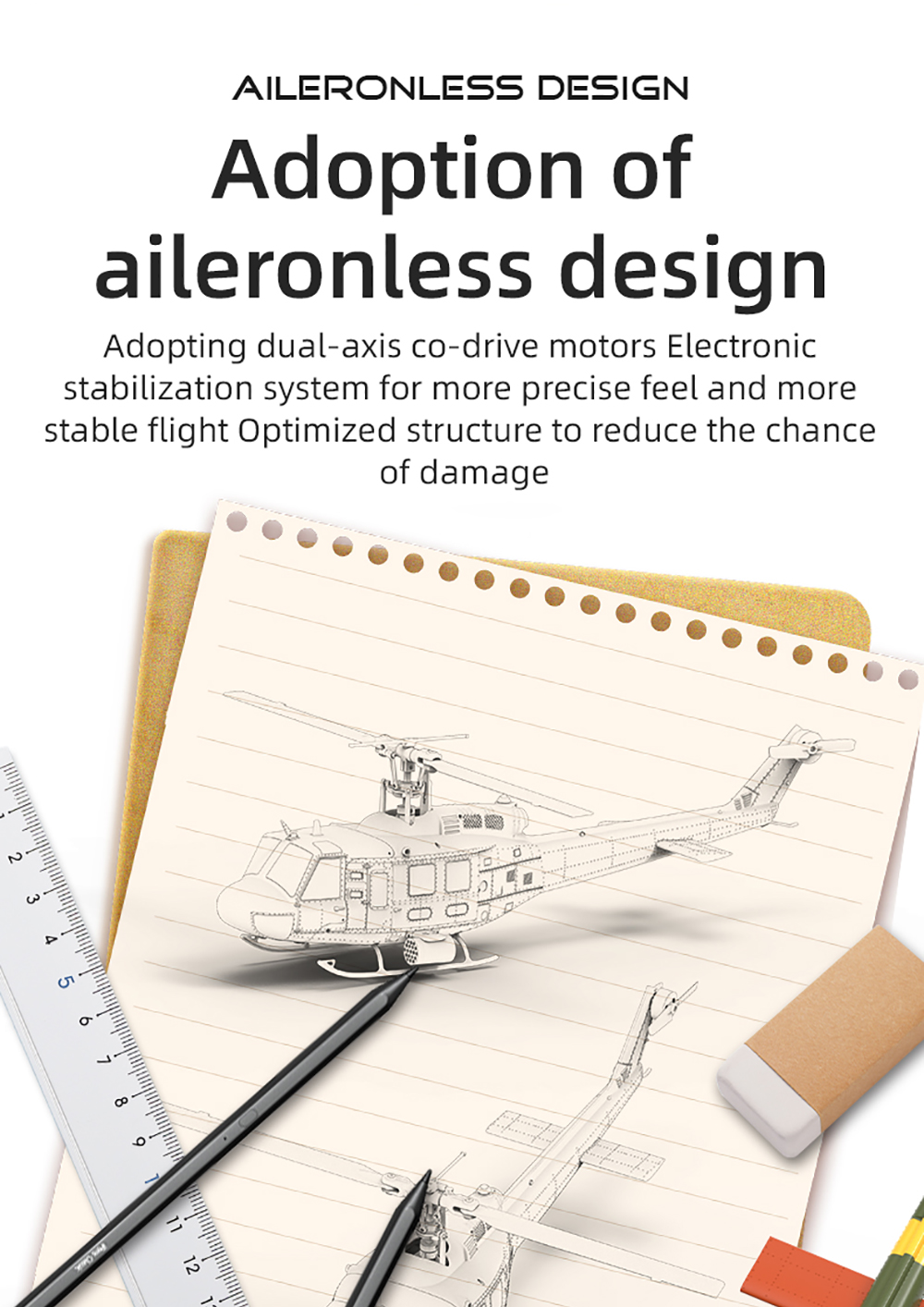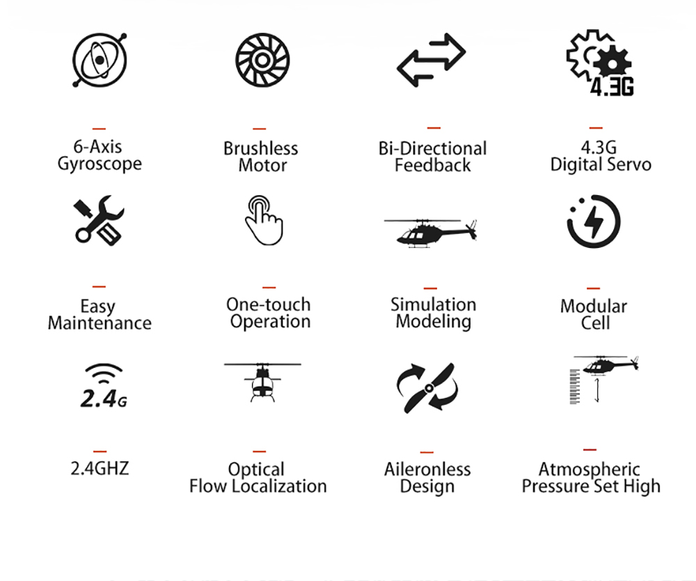 4. Adoption of aileronless design, dual-axis co-drive Brushless Motor Electronic stabilization system for more precise feel and morestable flight Optimized structure to reduce the chance of damage