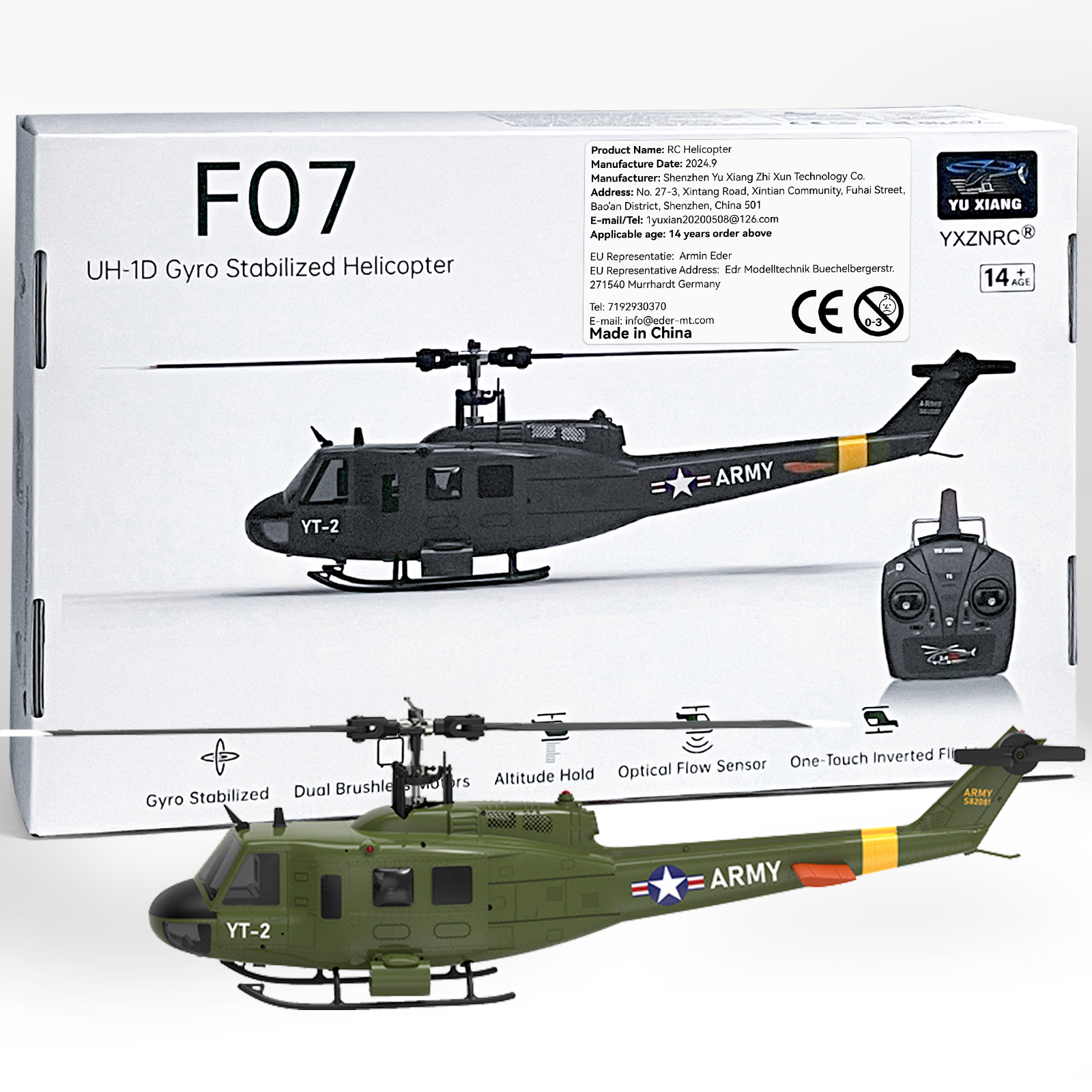 YUXIANG F07 1:34 UH-1 Huey Aileronless Helicopter 2.4G 6CH Dual Brushless Motor 120m 6-axis Gyro Optical Flow Positioning RC Helicopter