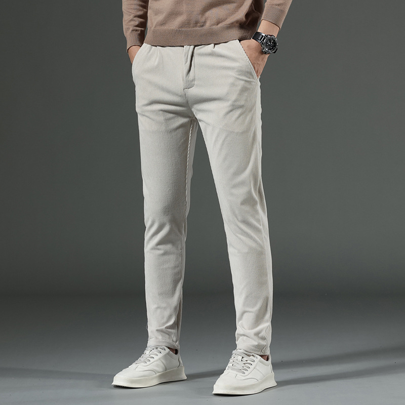 Men Pants Casual Corduroy Comfortable Stretch Fashion Straight Leg Pant Trousers