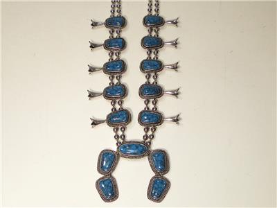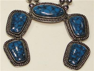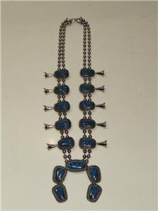 This is for a vintage Goldette faux turquoise squash blossom necklace. Approximately 14" long. All stones present. Very good condition. Signed Goldette on clasp. For your personal display or to give as a gift.