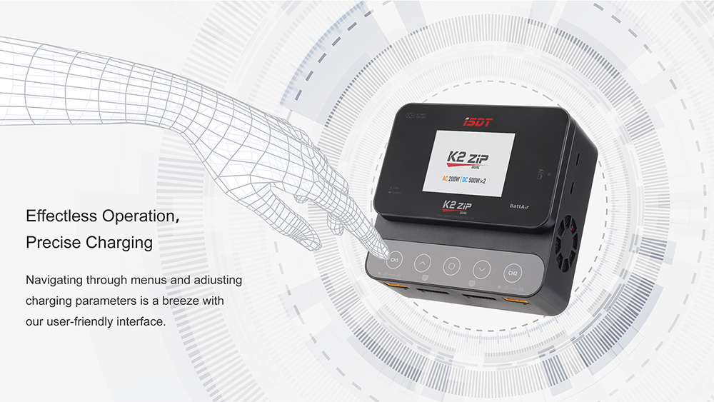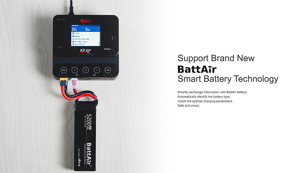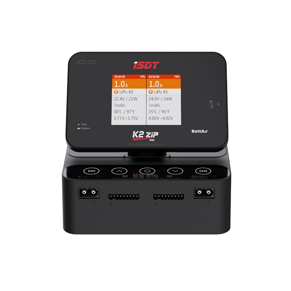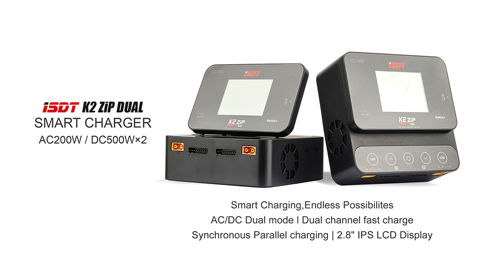 ISDT K2 ZIP Dual Mode Smart Charger,2.8" IPS LCD Sunlight Screen,178 ° Viewing Angle,Dual Charging Independently Charging,Connect With ISD Link APP,Supports BattAir Smart Battery,Flexible To Meet Different Use Scenarios.