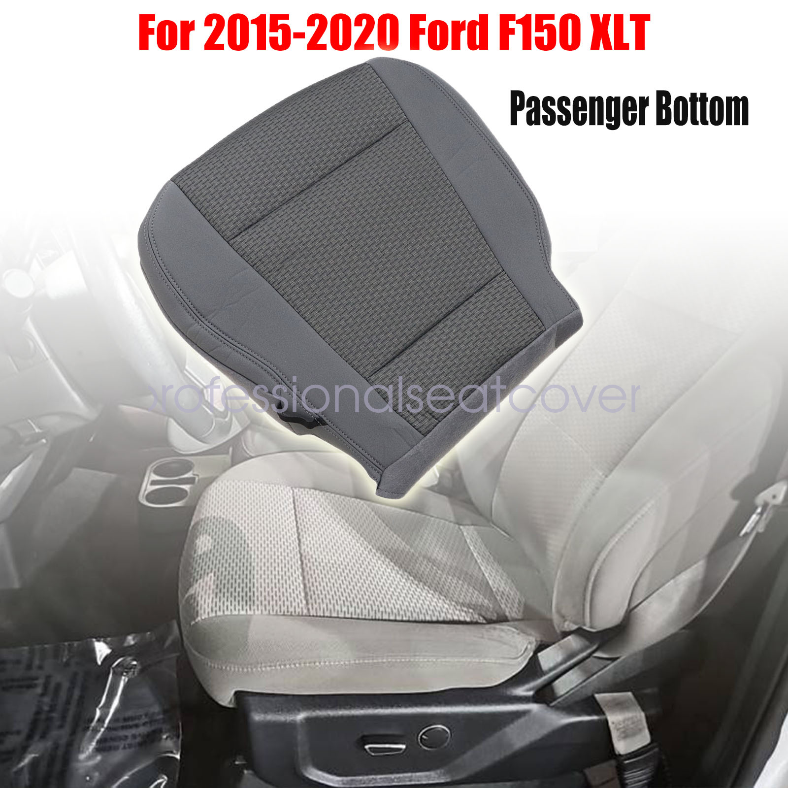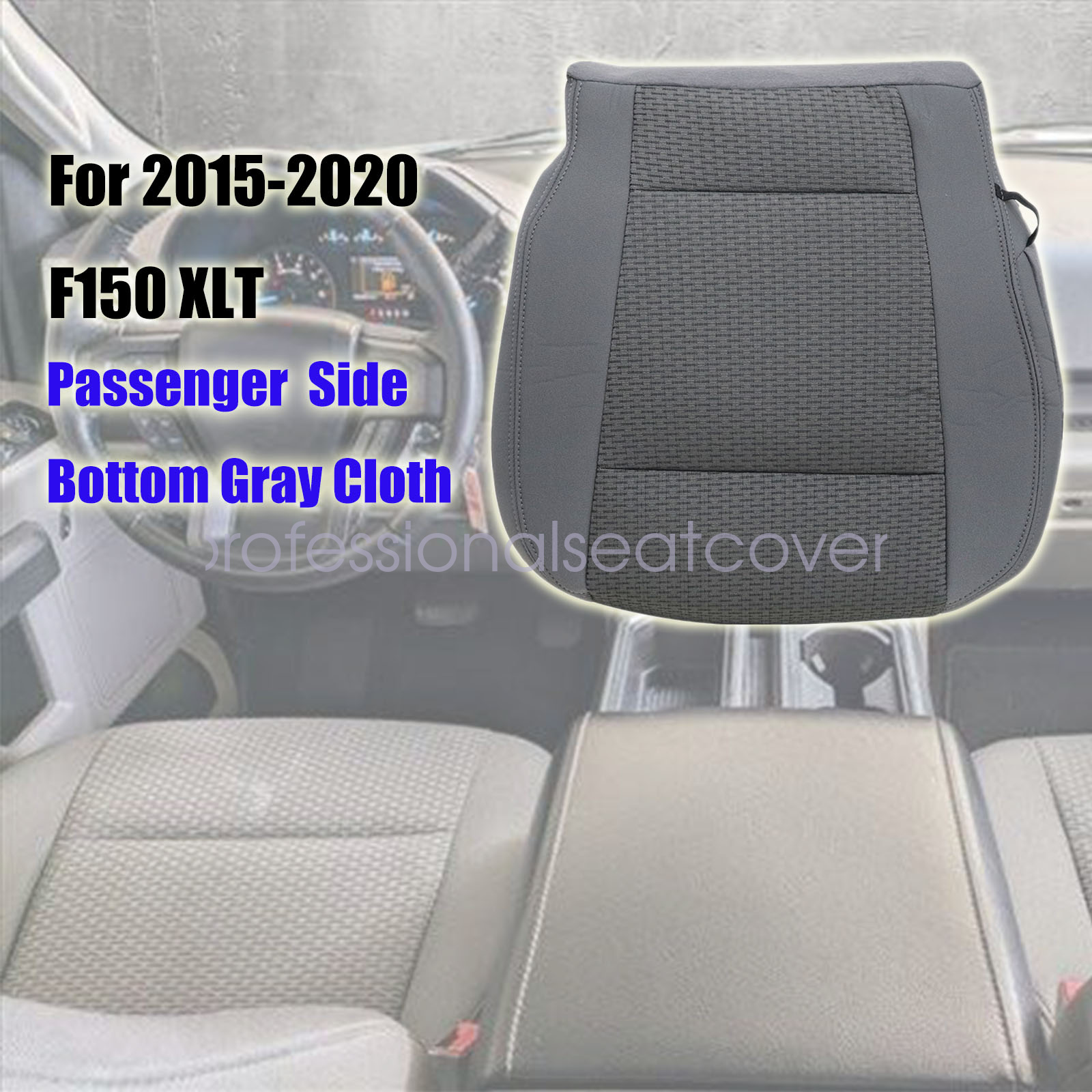 Replacement For 2015 2016 2017 2018 2019 2020 Ford F150 XLT Passenger Side Cloth Bottom Seat Cover Gray