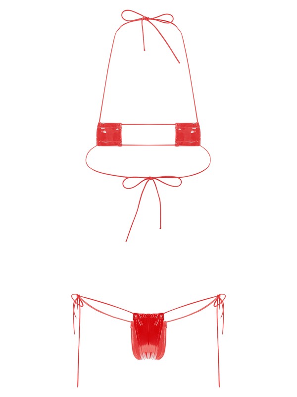 This glossy patent leather bikini set, mini coverage, highlight you body curve and make you more attractive.