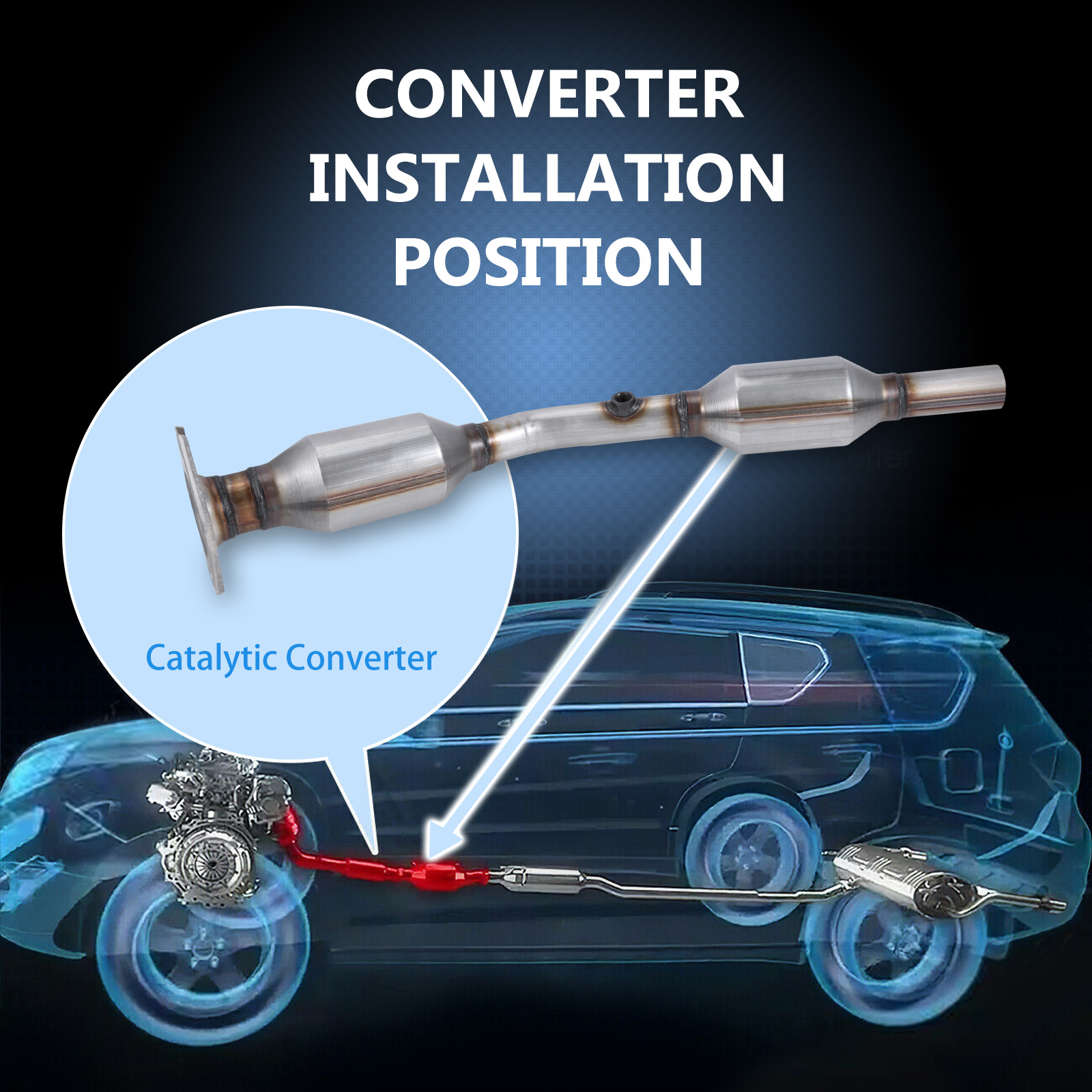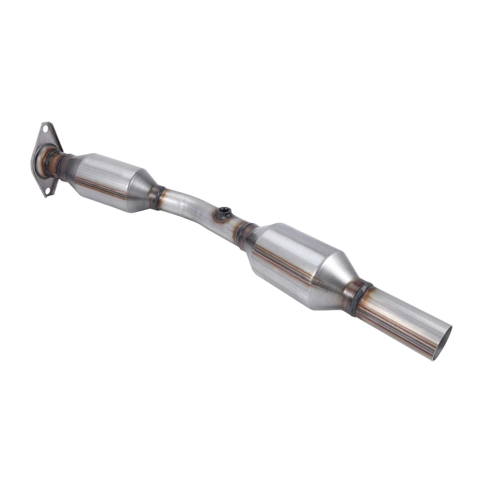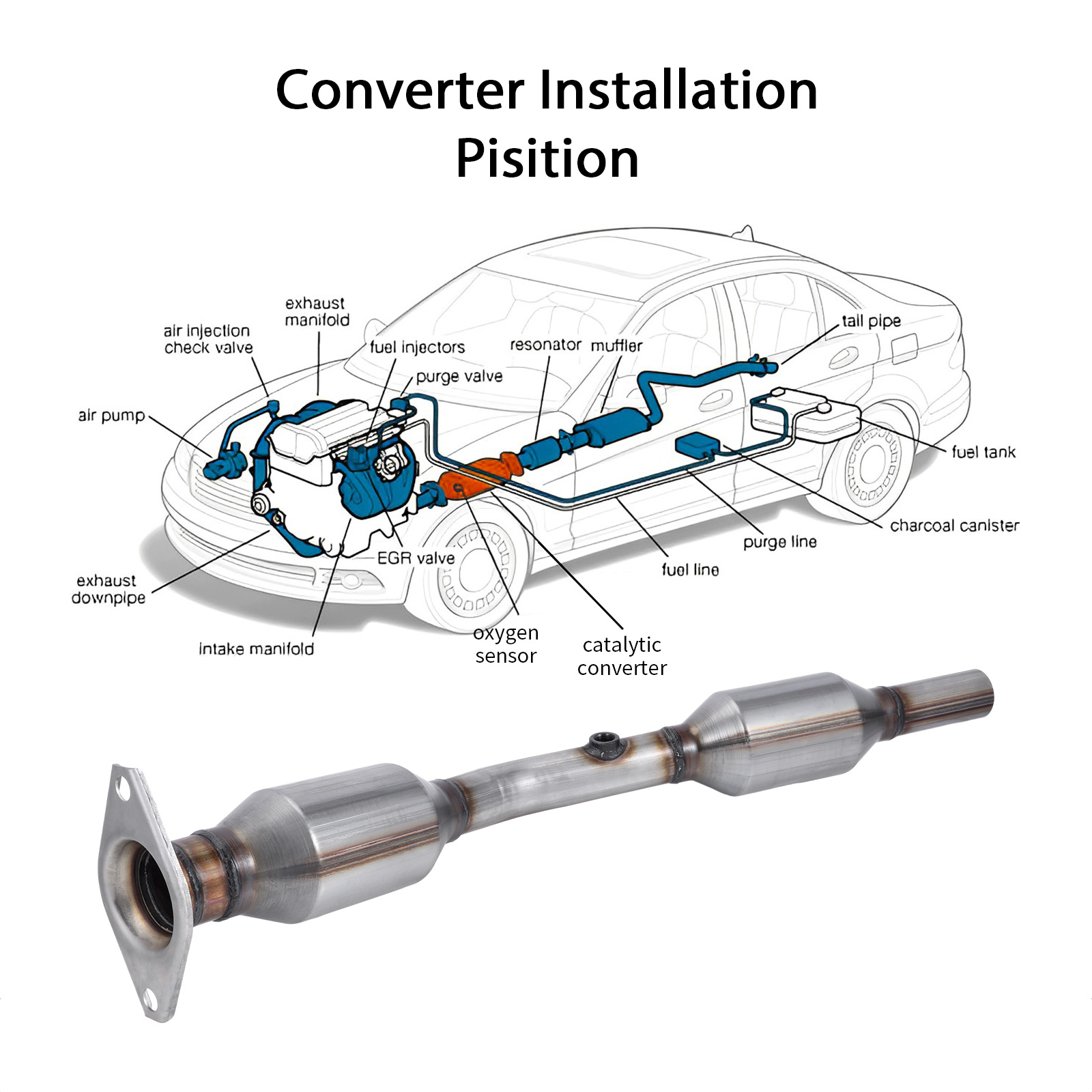 The pipe constructed from 14 gauge tubing, with original oe style heavy duty stainless flanges, inner braid flex pipe and high loaded OBDII by design catalytic converter