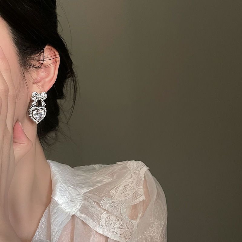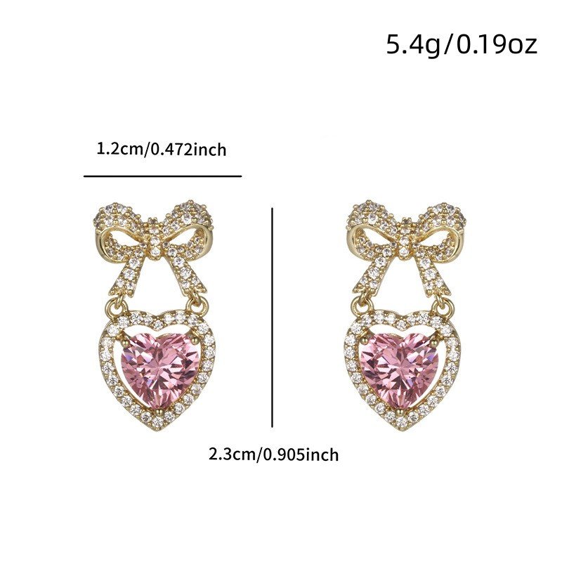 Elegant Full Zircon Heart Bowknot Earrings Stud Women Drop Dangle Jewelry Gift