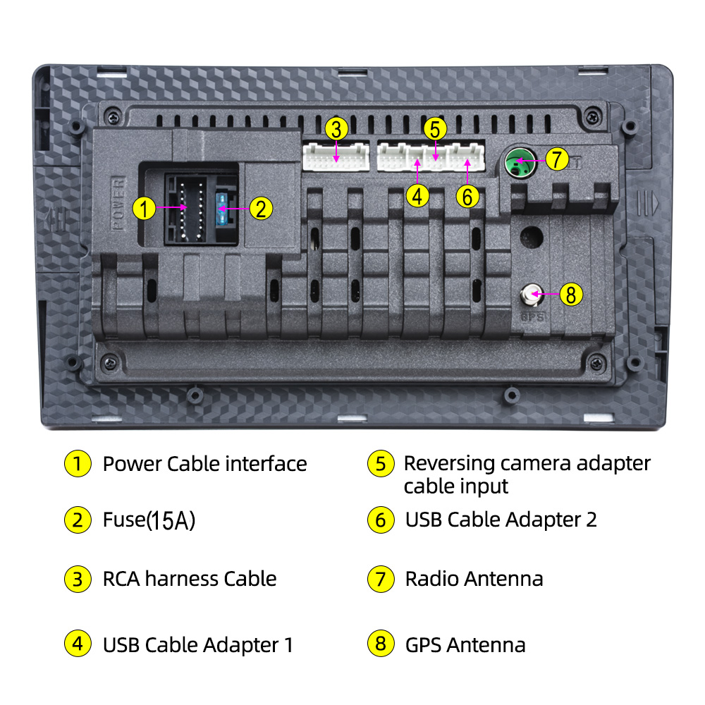 8.Rear view function:Support Rear view camera input, backing car more safer and convenient