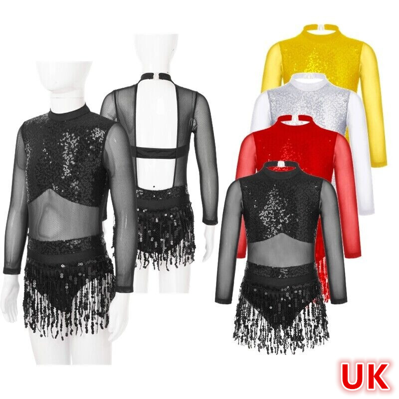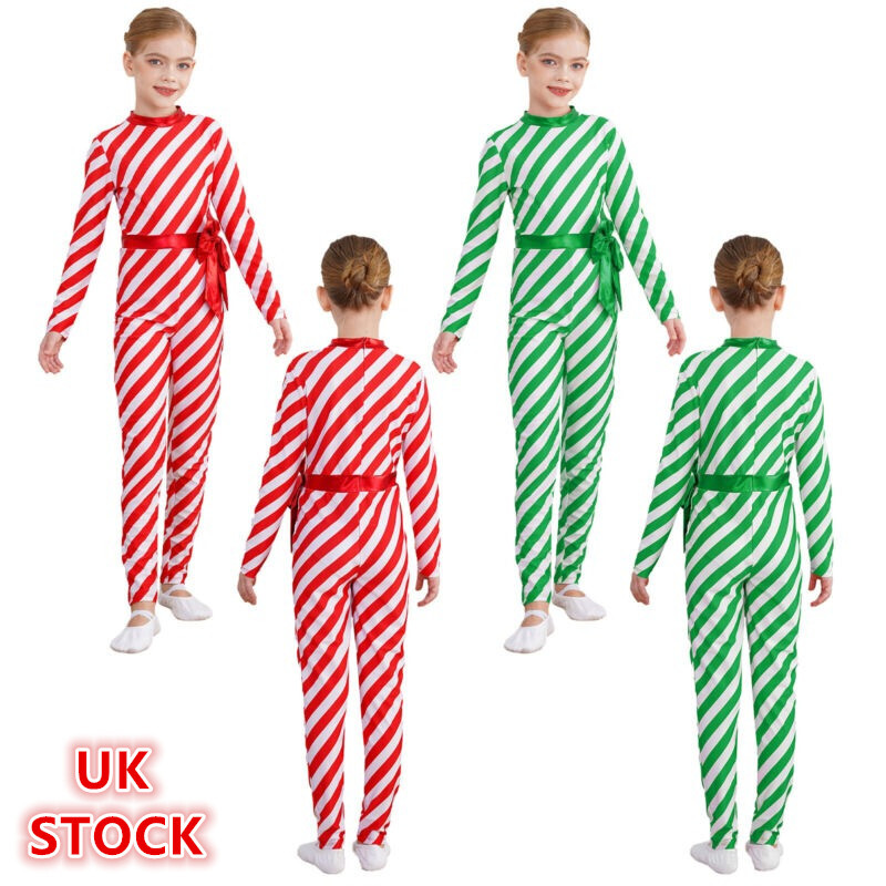 UK Girls Christmas Elf Gymnastics Leotard Bodysuit Xmas Santa Claus Costume