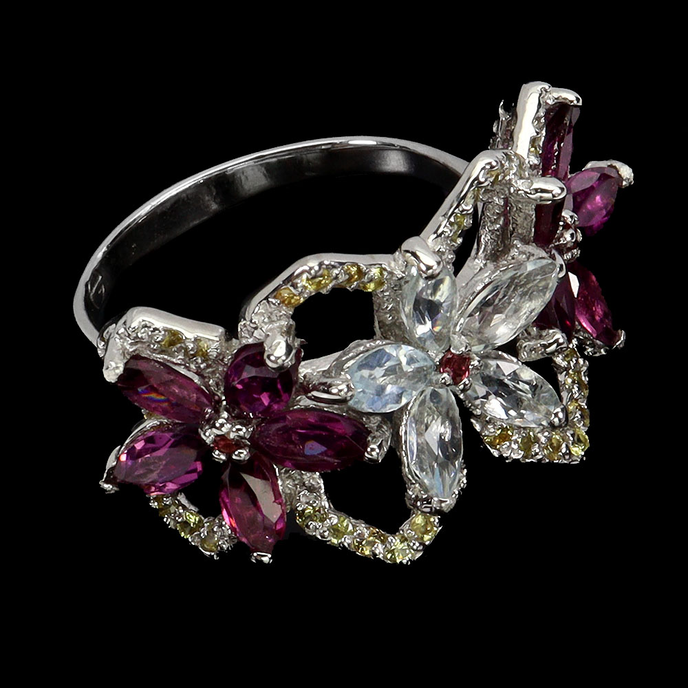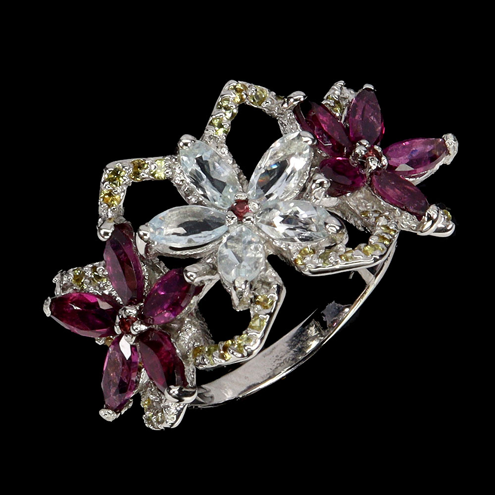 925 Sterling Silver Ring Marquise Aquamarine Rhodolite Sapphire Gemstone Jewelry