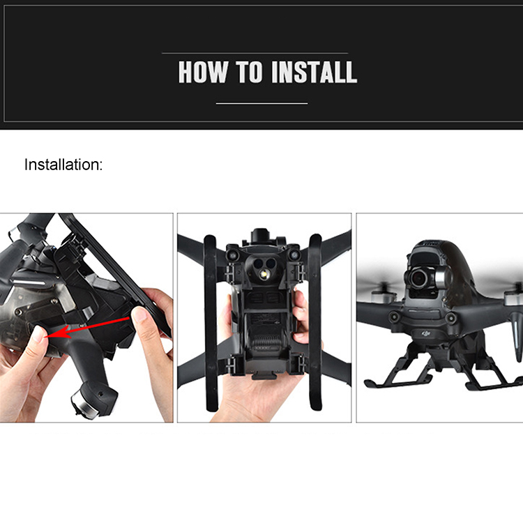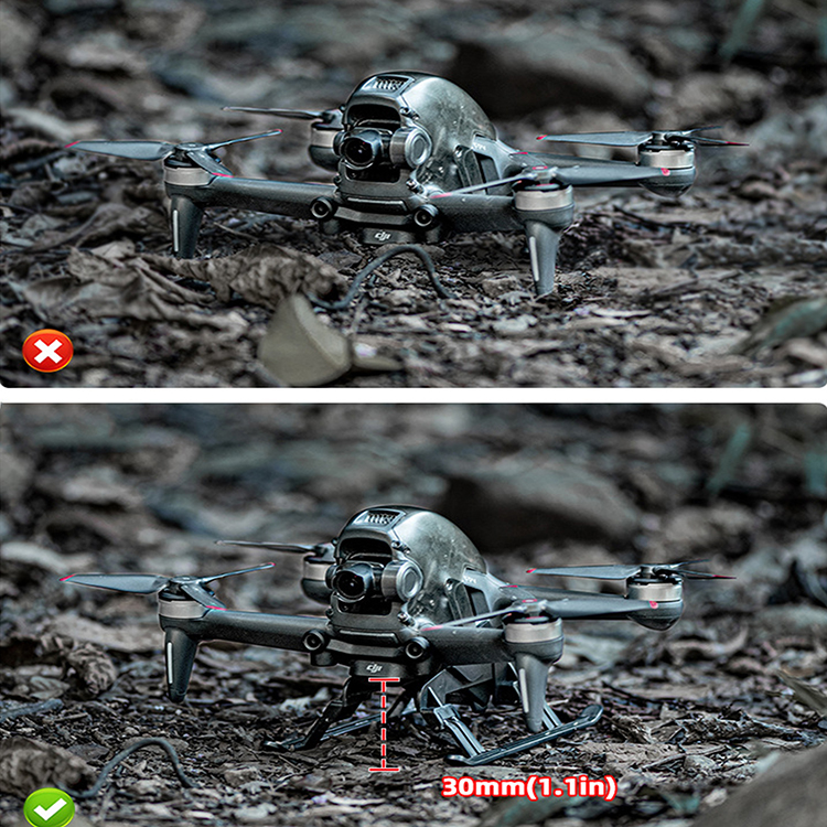 l Effectively increase the height by 30mm that can prevent ground debris from polluting the fuselage or damaging the gimbal and camera during take-off and landing