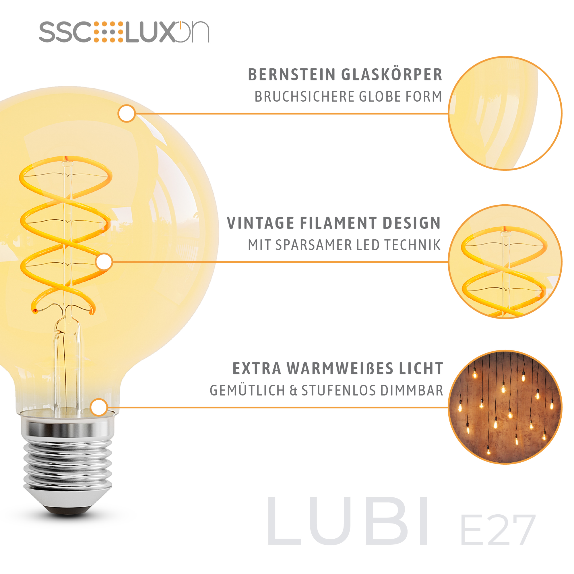LUBI Retro LED Glühbirne E27 extra warmweiß Globe Vintage Design dimmbar 4W