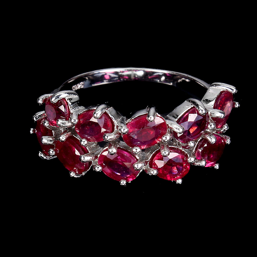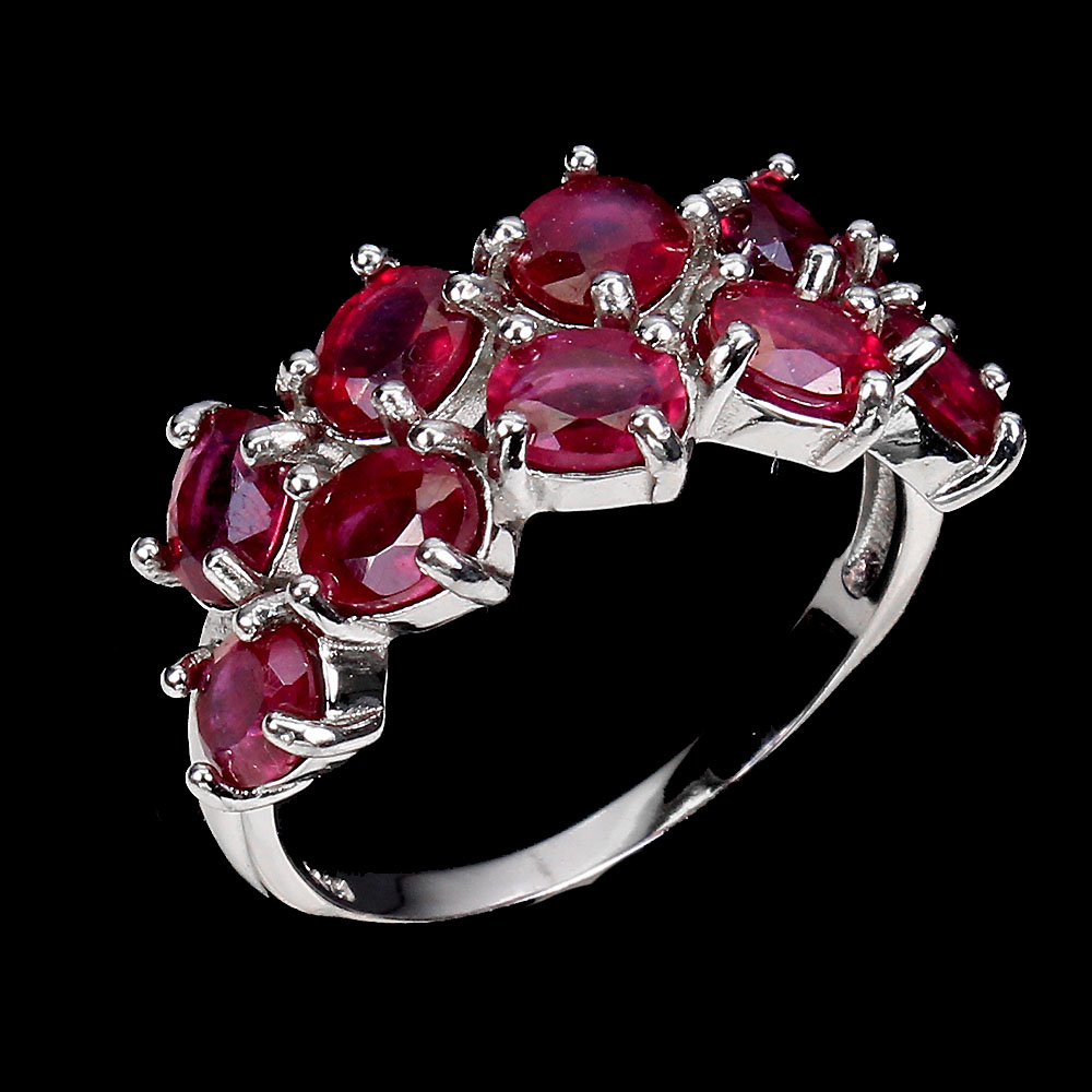 Heated Oval Red Ruby 5x4mm 14K White Gold Plate 925 Sterling Silver Ring Size 7
