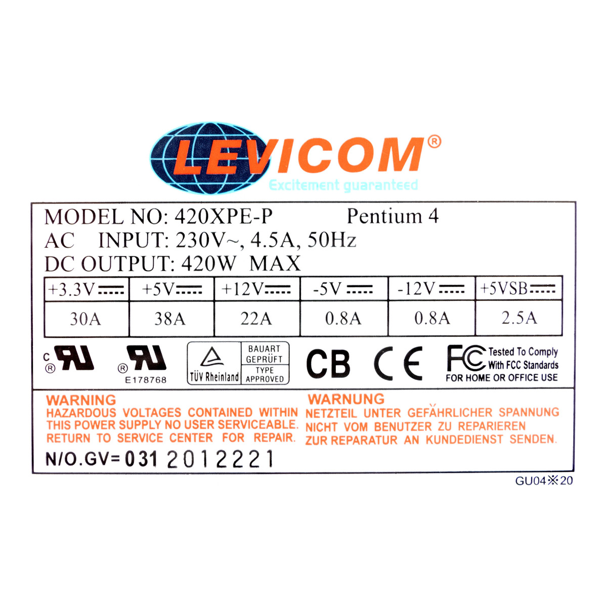 Netzteil LEVICOM 420XPE-P 420W ATX 20-PIN SATA MOLEX FDD AUX ATX12V