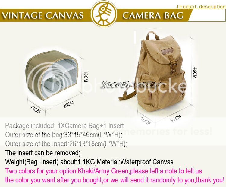 Package included: 1 X Camera Bag + 1 Insert