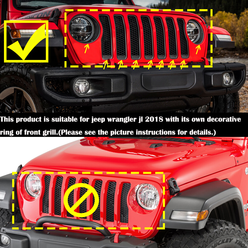 1.Car Model: Fit for 2018+ Jeep Wrangler JL JLU ( ONLY fit JL / JLU which comes with factory grill )