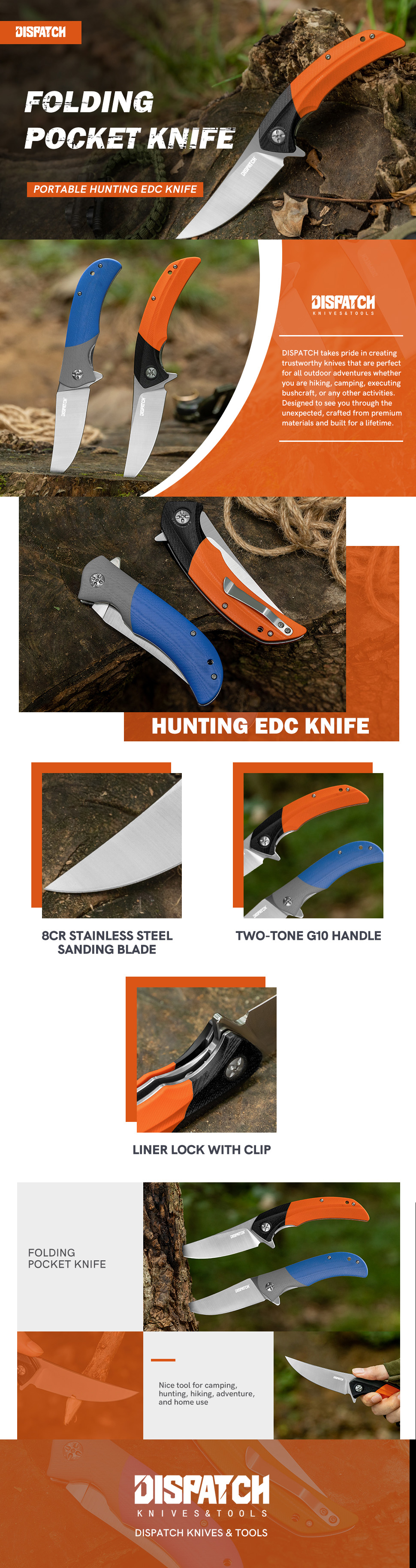 Dispatch 5.04 inchFolding Pocket Knife with Clip G10 Handle 8Cr Blade Liner Lock EDC Knife