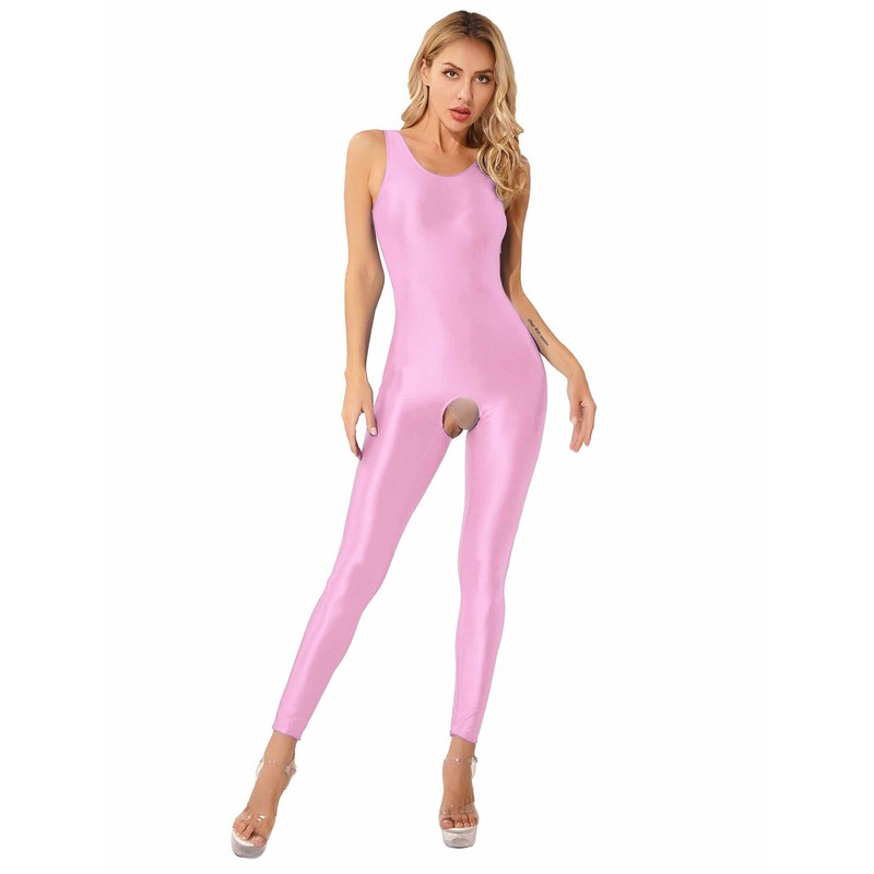 Sleeveless jumpsuits for women, glossy surface, solid color, open crotch design makes you more attractive to your lover.