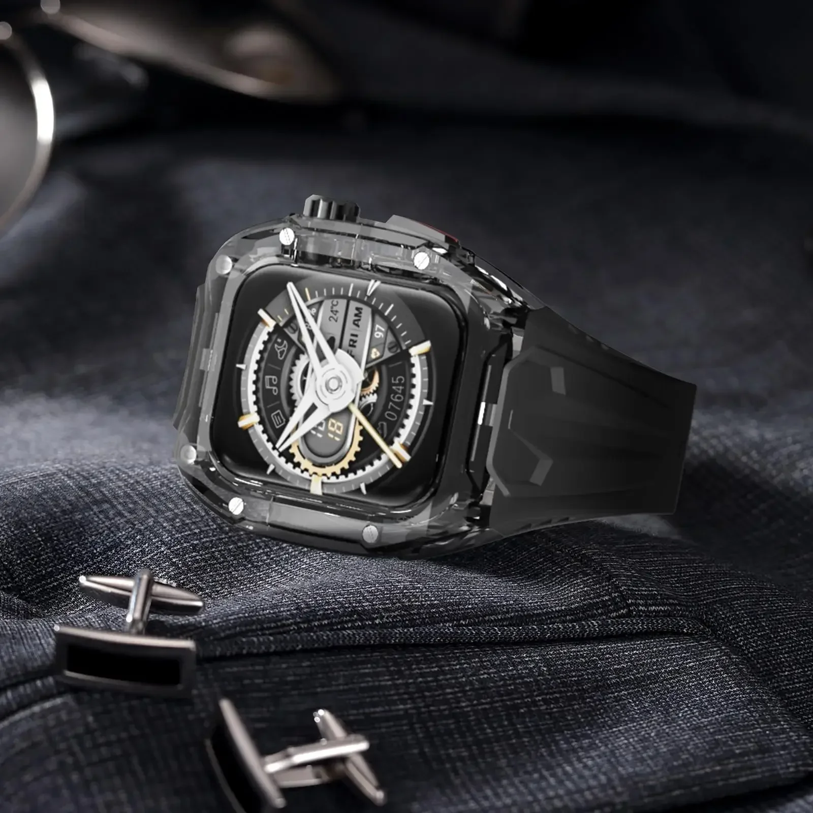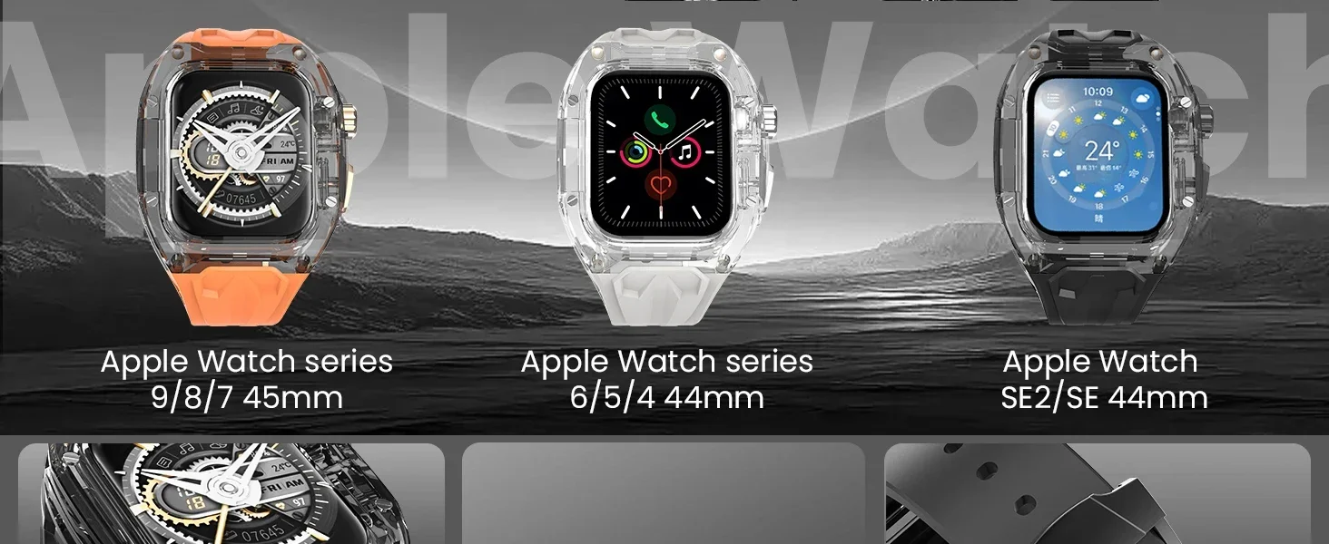 Transparent Modification Kit For Apple Watch S10 46mm 9 8 7 49mm 40mm 41mm 44mm 45mm Strap+Case For iWatch Series 10 9 8 7 6 5 4 Ultra 2/1 Band